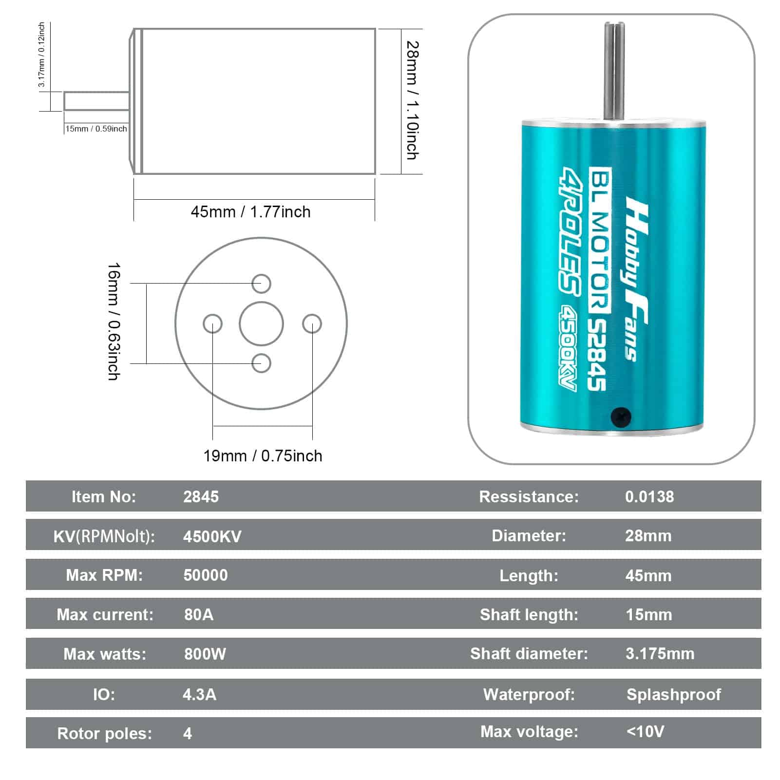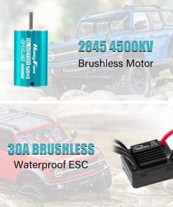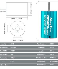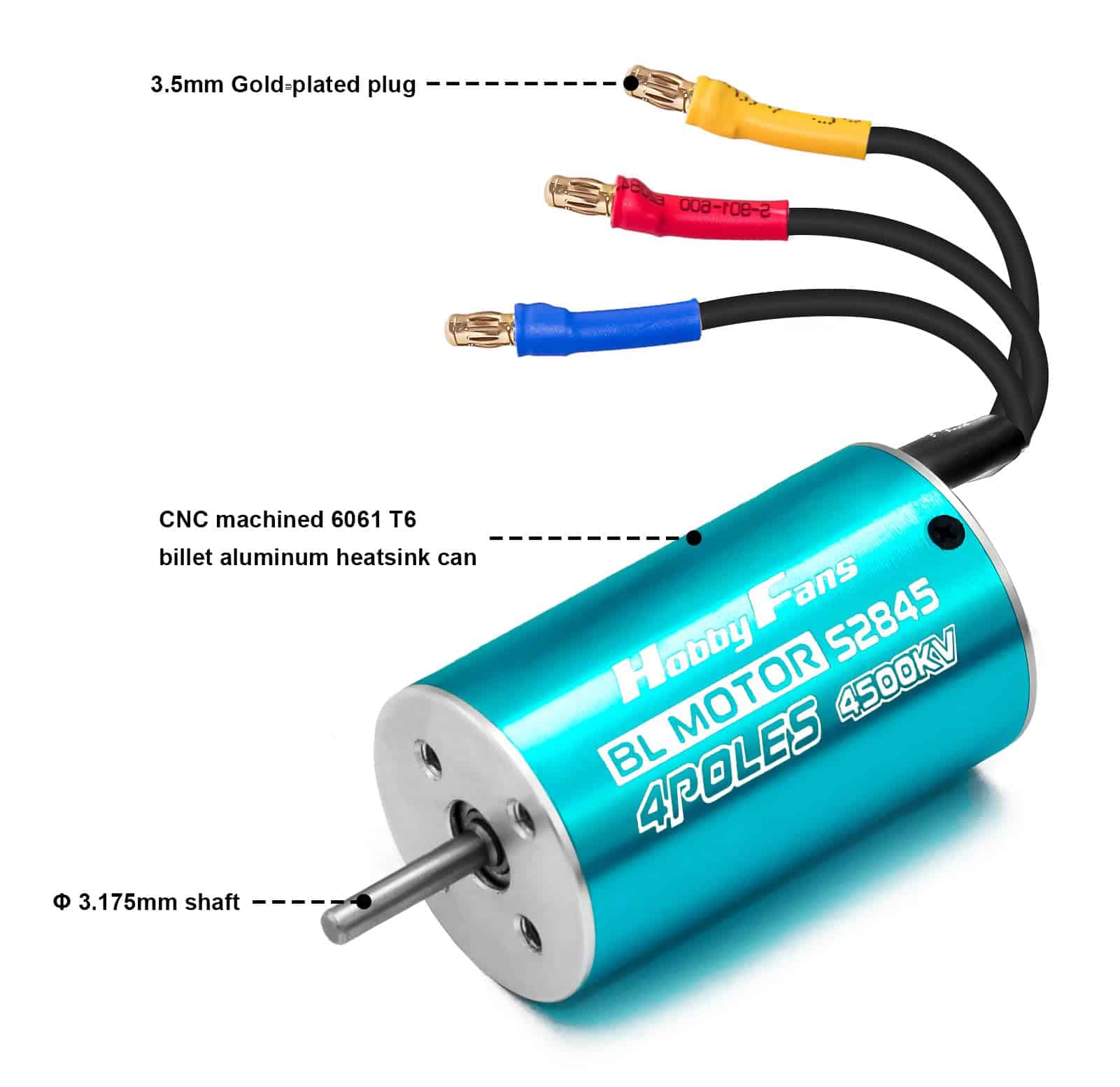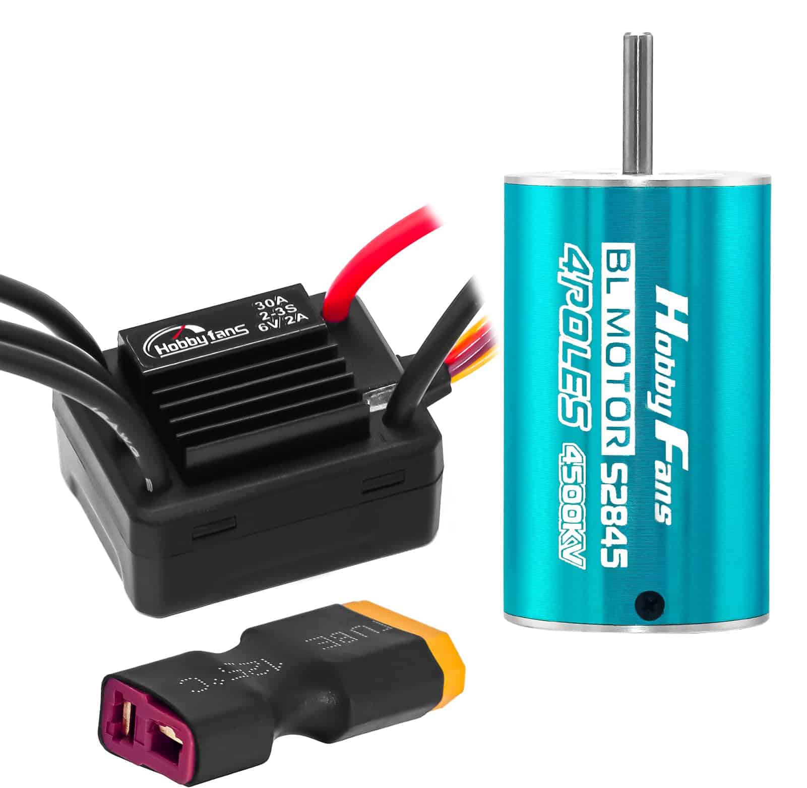 El Motor sin Escobillas Sensorless 2845 4500KV & ESC Brushless Impermeable de 30A para Coche Camión RC 1/14 1/16 1/18 de Hobby Fans es un combo de alta calidad que garantiza un funcionamiento eficiente y confiable. Su diseño de motor de 4 polos y 12 ranuras de alta torsión lo hacen adecuado para coches RC a escala 1/14 1/16. Con una respuesta de aceleración mejorada, excelente aceleración, interrupciones potentes y una línea de aceleración super suave, este ESC de 30A es una excelente opción para mejorar el rendimiento de su vehículo RC. Además, su disipador de calor de aluminio billet 6061 T6 mecanizado por CNC garantiza un enfriamiento eficaz durante su uso. ¡Aumenta la potencia y la diversión de tu coche o camión RC con este combo de motor y ESC de Hobby Fans!