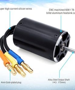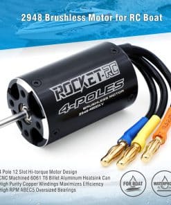 Diseño de 4 polos de 12 ranuras de alto par Motor de alta torsión diseñado con precisión para una conversión máxima de energía. Disipador de calor de aluminio billet CNC mecanizado 6061 T6. Devanados de cobre de alta pureza que maximizan la eficiencia. Rodamientos sobredimensionados ABEC5 de alto RPM. Rotor equilibrado con precisión, suavidad para una mejor confiabilidad y RPM máximo. Estator – Laminaciones súper delgadas (0.2 mm) Rotor removible/reemplazable. Marca: Surpass Hobby. No. de artículo: Motor 2948 4800KV para barco RC. RPM: 60000. Vatios: 1000W. Corriente máxima: 82A. Voltaje máximo: 12V. Tipo de bobinado: WYE. Número de vueltas: 2Y. Corriente en vacío: 2.2A. D&L: 29 48mm. Diámetro del eje: 3.175mm. Conector: conector banana dorado de 4mm. Peso: 145g. Chaqueta de refrigeración por agua: 37 41.6MM. 2 anillos de goma. Lista de paquetes: 1 Motor 2948 4800KV. 1 Chaqueta de refrigeración por agua. 2 Anillos de goma.