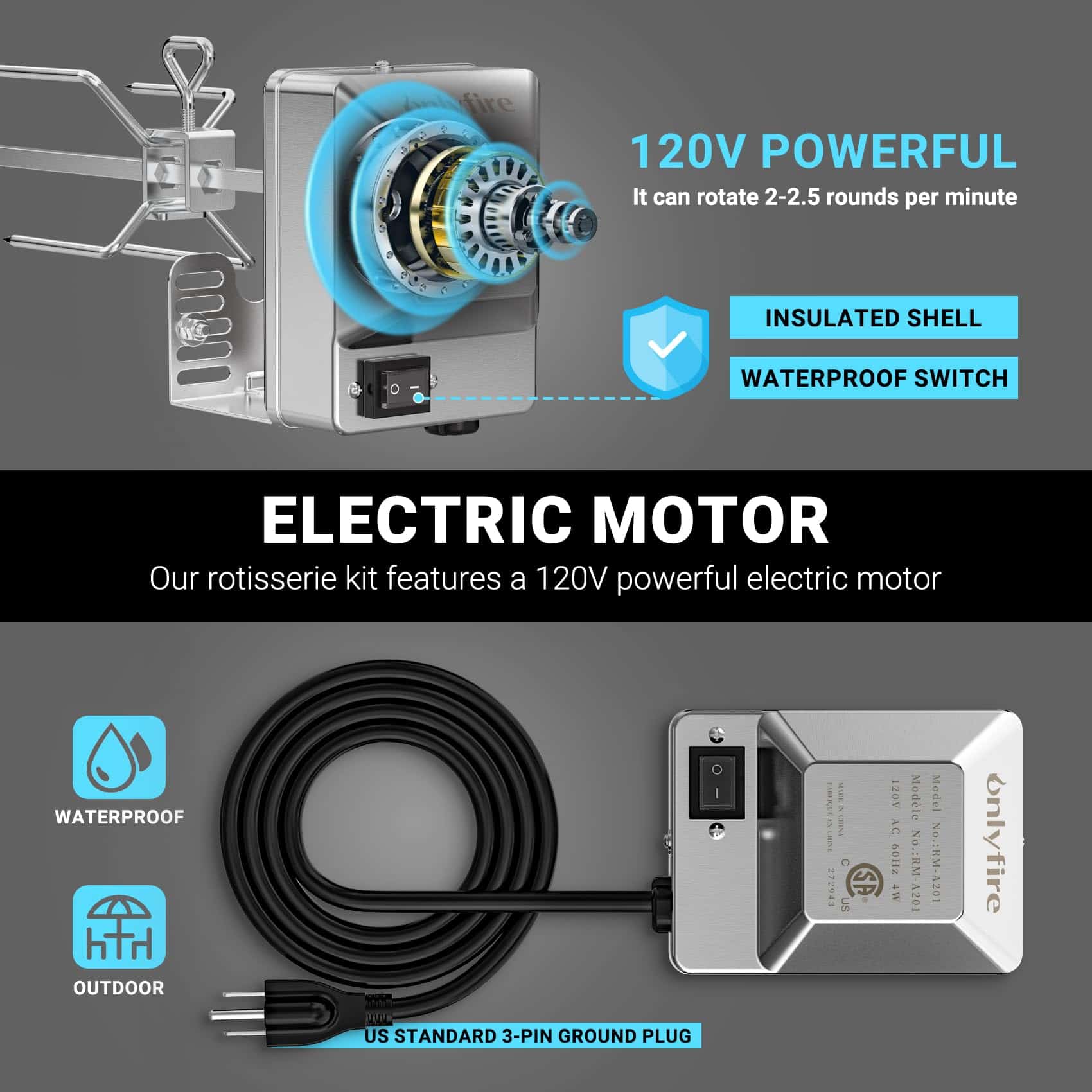 4. Accesorios para juegos de espiedo. Reemplazará la mayoría de los motores de espiedo. Una excelente actualización para la mayoría de las marcas principales: Weber, Char-Broil, GrillPro, Brinkmann, etc.
