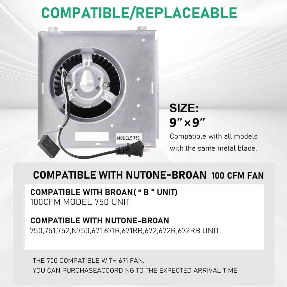 Motor Ventilador Modelo 750 Compatible con Broan 750,
