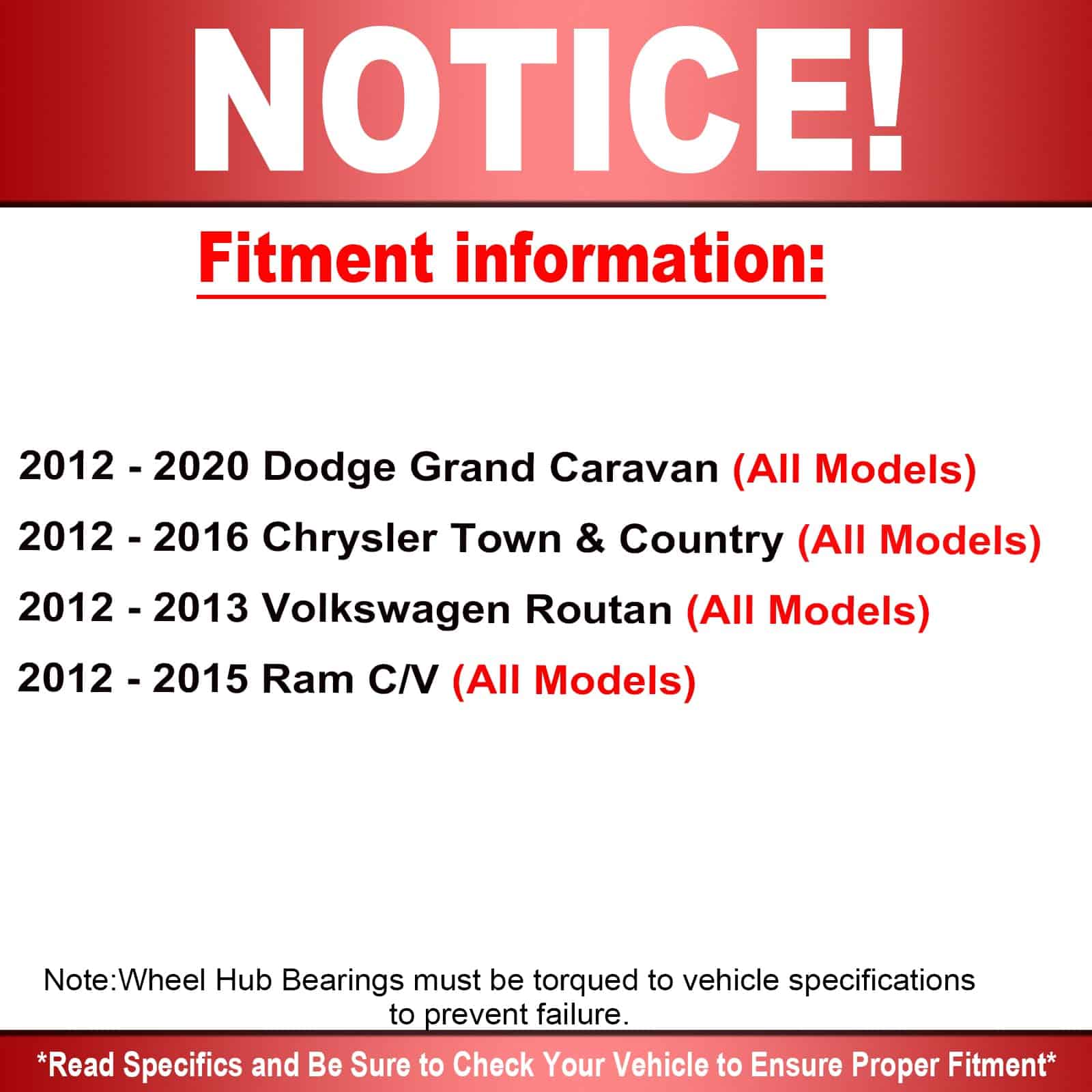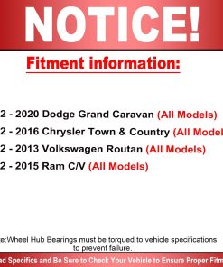 MotorbyMotor Ensamble de Cojinete de Rueda Trasera de BAJA DESVIACIÓN producido con Innovación Técnica que Elimina Ruidos Molestos. Con ABS 5 Pernos Ensamble de Cojinete de Rueda de Servicio Pesado. Ajuste para Dodge Grand Caravan 2012 – 2020, Chrysler Town & Country 2012 – 2016, Volkswagen Routan 2012 – 2013, Ram C/V 2012 – 2015.