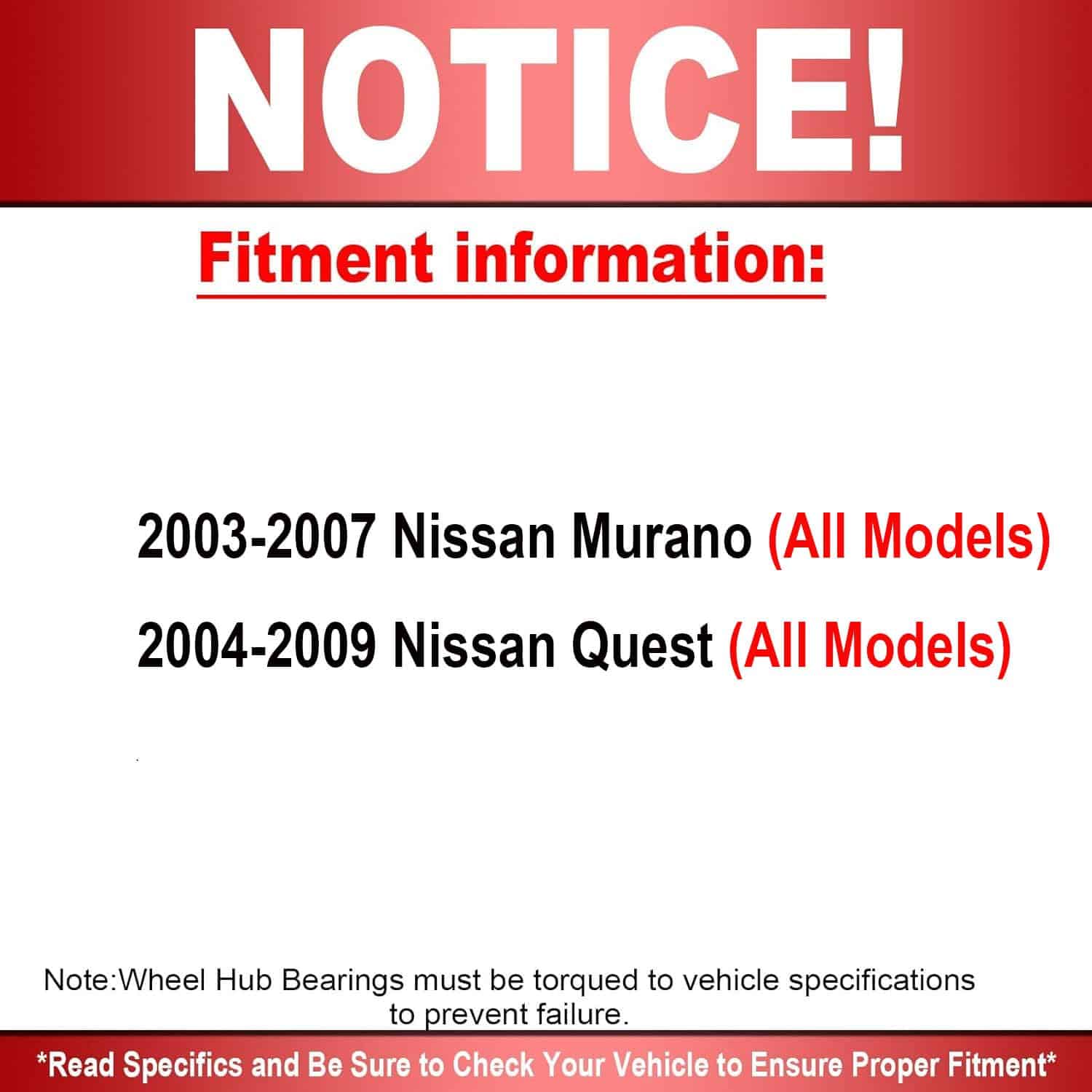 MotorbyMotor 513310 Ensamble de Cubo de Cojinete de Rueda Delantera es una excelente opción para reemplazar tu cojinete de rueda desgastado o dañado en tu Nissan Murano 2003-2007 o Nissan Quest 2004-2009. Este ensamble de cubo de cojinete de rueda delantera está diseñado con un bajo desajuste que elimina los ruidos molestos, proporcionando un desempeño suave y silencioso. El sello de labio cuádruple ayuda a prevenir daños durante la instalación y ofrece una protección mejorada para una vida útil prolongada y mayor durabilidad.