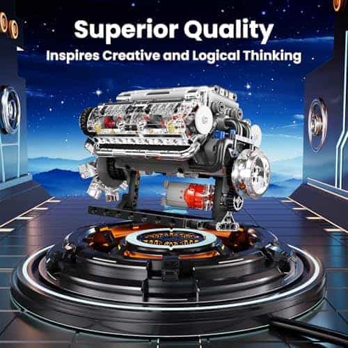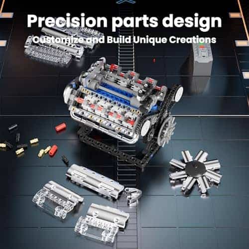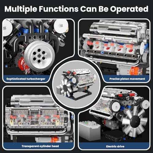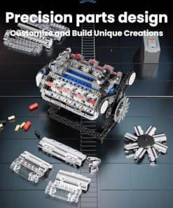 1. Diseño Realista: Este set cuenta con elementos de diseño altamente detallados y transparentes, incluyendo una culata transparente, movimiento simulado del pistón y un turbocompresor, proporcionando una representación auténtica de los trabajos internos de un motor V8. Es una excelente opción para los entusiastas de los autos y aquellos interesados en la ingeniería mecánica.