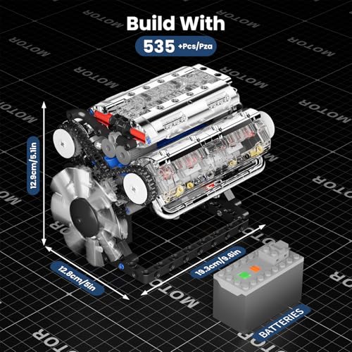 Mould King 10088 V8 Kit de Modelo de Motor Construye tu Propio Mini Motor V8 STEM Juego de Bloques de Construcción que Funciona para Adultos y Niños de 14+, 535 Piezas