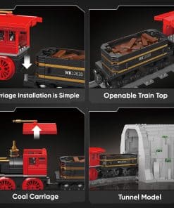 Una versión de modelo de la locomotora de vapor americana rápida y potente de la época de la era del vapor. Incluye túnel de montaña, control remoto y módulo de energía de la batería de litio. Constrúyelo para demostrar verdadera y perfectamente el funcionamiento de un automóvil a vapor. Perfecto para niños y niñas a los que les gustan los trenes, así como un imprescindible para los entusiastas de los ferrocarriles que aprecian las locomotoras clásicas y buscan un nuevo pasatiempo.