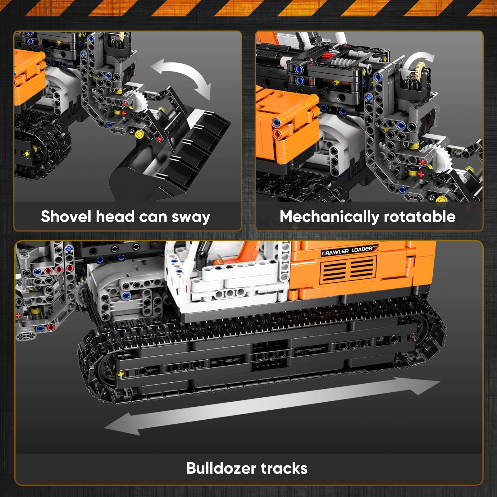 1. Este Kit de bloques de construcción de cargador de oruga simula una cabina real, el sistema de tracción de oruga, extensión y retracción del brazo, dirección flexible, elevación y descenso de cubos. Especialmente diseñado para entusiastas de juguetes en escenas de sitios de construcción.