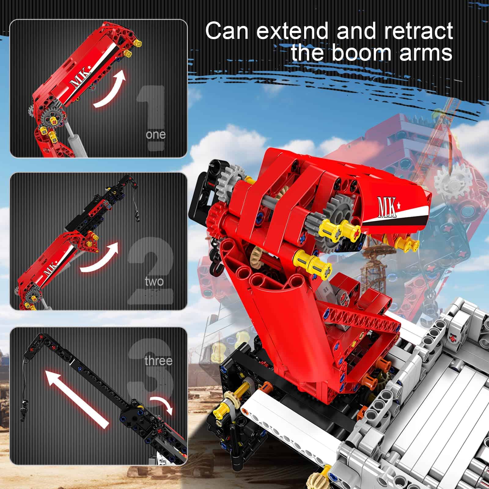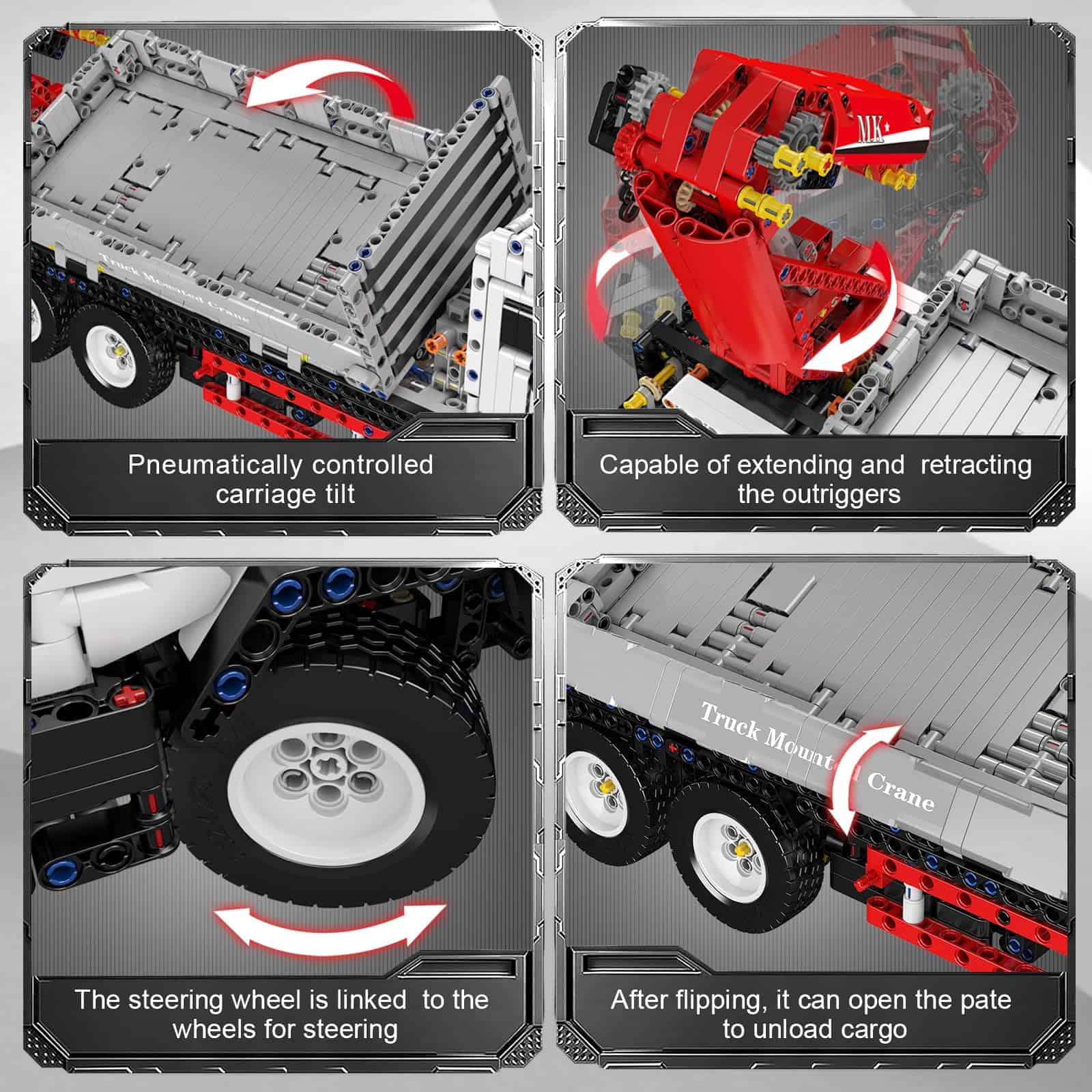 1. Mould King Truck-Mounted Crane diseñado para fans de bloques de construcción tecnológicos a gran escala que simulan una grúa montada en camión real, ¡más funciones de las que puedes imaginar!.