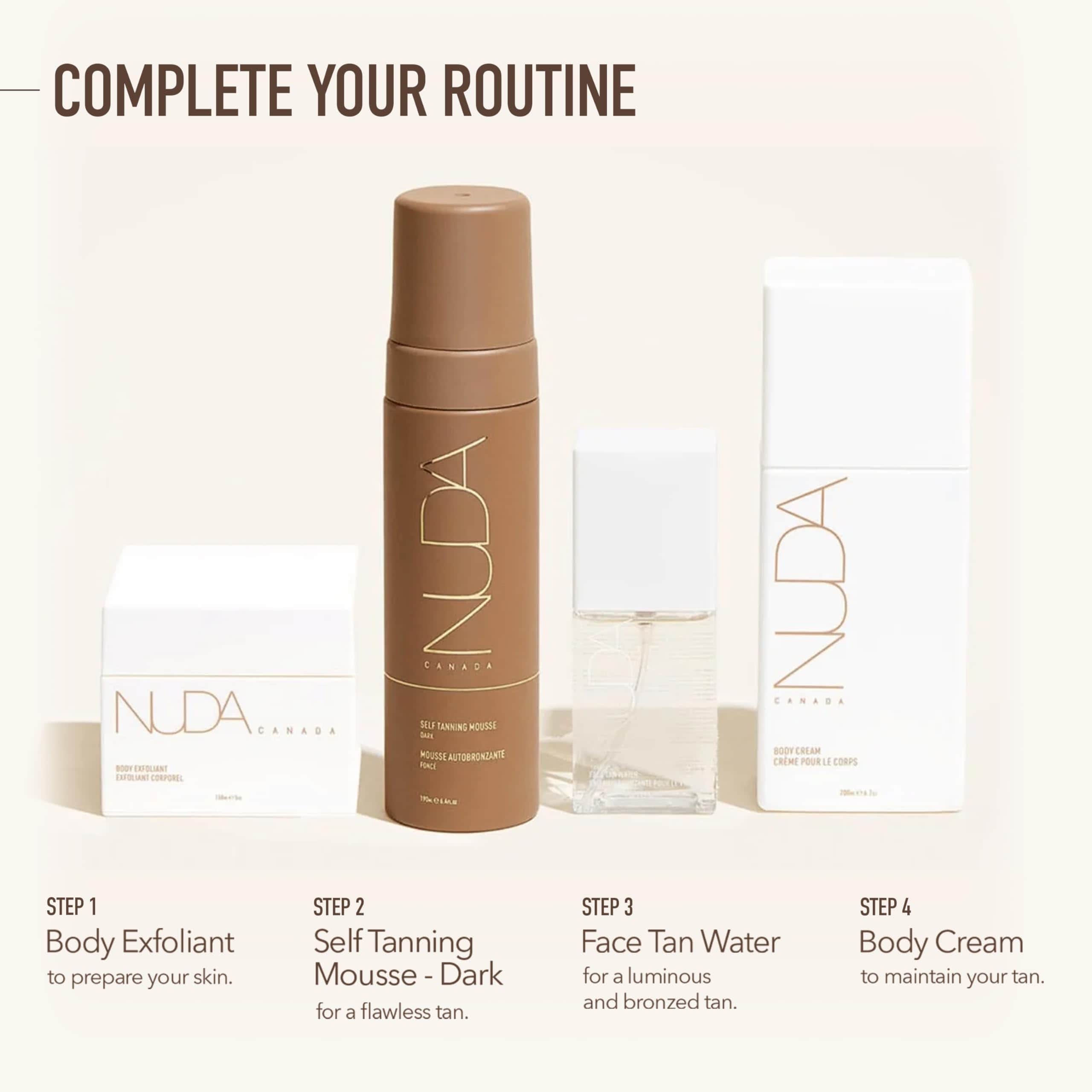 5. ¿QUIÉN ES NUDA?: NUDA es una empresa con base en Canadá fundada en 2017 por Mahay y Genevieve, 2 emprendedoras apasionadas que querían proporcionar una alternativa segura a la exposición al sol al ofrecer productos autobronceadores y para el cuidado de la piel. Comenzaron ofreciendo soluciones de bronceado en spray y capacitación para artistas de bronceado en spray. 3 años después, lanzaron una línea de autobronceadores y productos para el cuidado de la piel para uso doméstico.