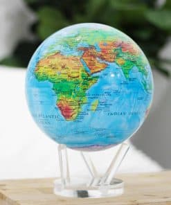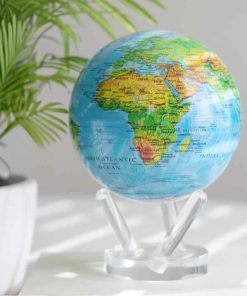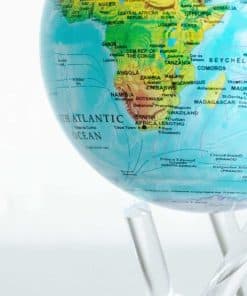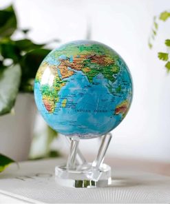 El original Mapa de Relieve presenta tierras verdes y marrones más oscuras contrastadas con cuerpos de agua azules brillantes. El sombreado indica cambios en la elevación, mientras que las líneas direccionales muestran el flujo de las corrientes oceánicas. El Globo MOVA gira suavemente y en silencio dentro de una carcasa de acrílico transparente. ¡No se requieren pilas ni cables! Simplemente coloca el globo MOVA en su soporte, y tu globo MOVA cobrará vida y comenzará a girar cuando esté expuesto a la luz natural o artificial.