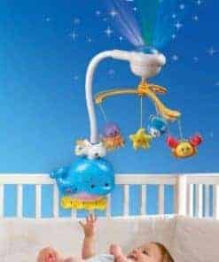 El móvil VTech Soothing Ocean Slumber ayudará a su bebé a nadar hacia dulces sueños. Con sus adorables animales marinos, música calmante y proyecciones de luz relajantes, su bebé amará estar en su cuna mientras se queda dormido. Su hijo será arrullado a dormir con el Móvil VTech Soothing Ocean Slumber. Diseñado para crecer con su hijo, este móvil 2 en 1 deleitará a su pequeño desde la infancia hasta sus años de niñez. Su recién nacido observará y escuchará maravillado cómo los coloridos animales marinos giran en el móvil electrónico al ritmo de la música tranquila mientras una imagen reconfortante se proyecta en el techo. A medida que su bebé crece, el brazo del móvil se puede quitar y convertir en un juguete para la cuna y proyector de luz.