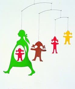 Los móviles Flensted son una artesanía tradicional en Dinamarca. El primer móvil de diseño moderno se hizo allí en 1954. Hoy en día, Flensted Mobiles tiene su sede en la isla danesa de Funen, el lugar de nacimiento de Hans Christian Andersen, donde crea sus propios cuentos de hadas de diseño desde la antigua escuela del pueblo en Brenderup. Cinco mujeres en un móvil. Embarazo: Un momento feliz y expectante se simboliza en este móvil. Un regalo ideal para la familia que espera con ansias un bebé.