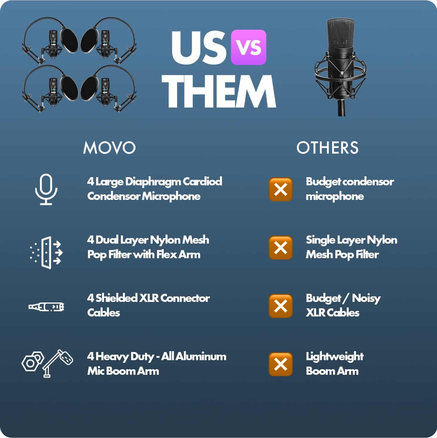 Movo PodPak4A 4-Pack Universal XLR Condenser Microphone