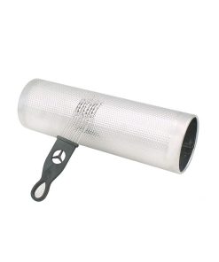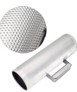 Cuerpo de acero inoxidable con un diseño hueco y abierto para un sonido de guiro rasposo con tonos brillantes.
