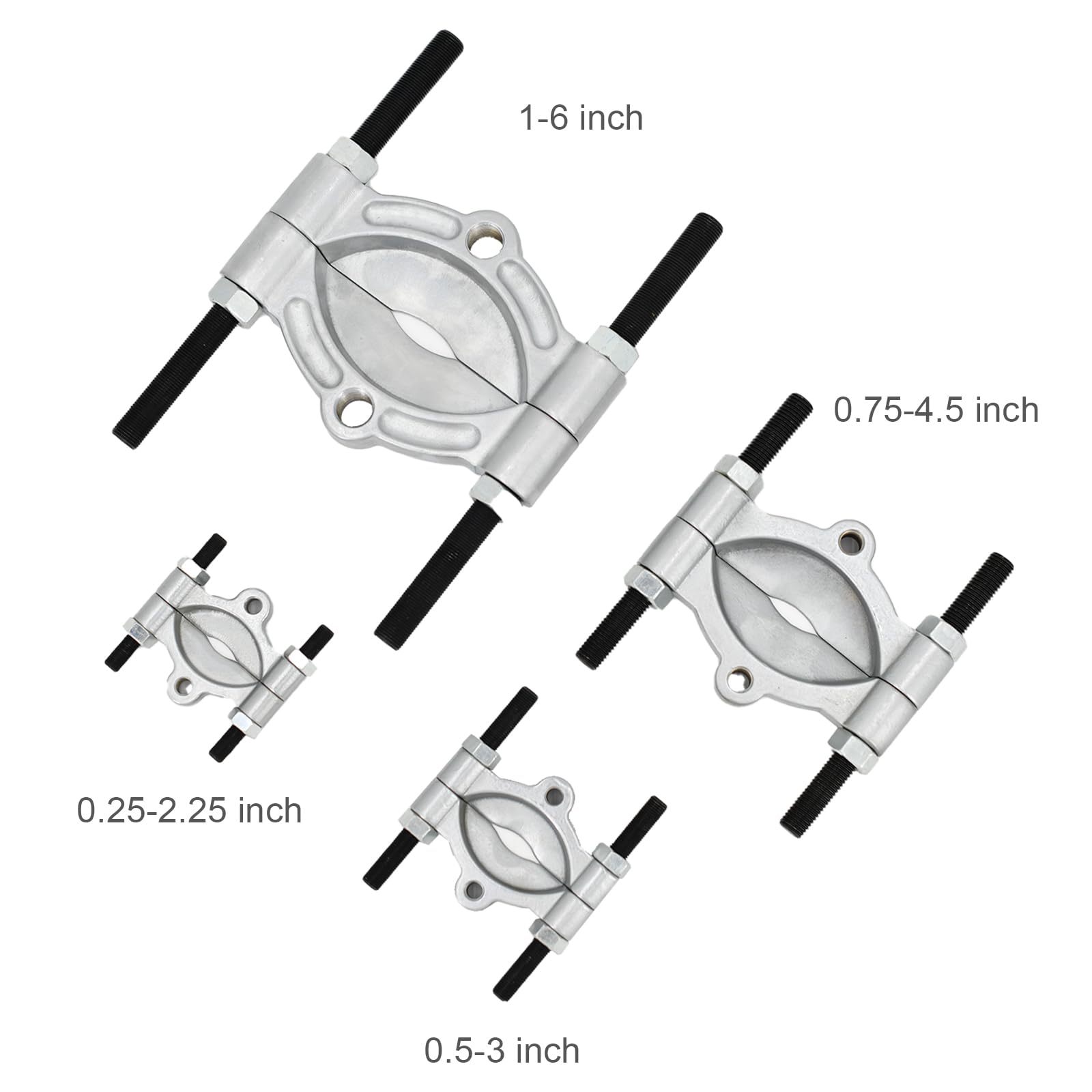 Extractor de Cojinetes | Nuevas Herramientas Extractoras: Estos separadores de cojinetes tienen bordes afilados que pueden posicionarse detrás del objeto para crear una superficie de agarre, incluso en espacios reducidos. Se pueden utilizar con un extractor, donde las mordazas del extractor sujetan el borde exterior del objeto. Alternativamente, se pueden utilizar con un extractor de empuje, donde las patas del extractor se enroscan en los dos agujeros roscados del objeto. Estos separadores están hechos de materiales duraderos y están diseñados para un uso a largo plazo en condiciones adversas. Tienen una construcción de alta resistencia y pueden manejar objetos con un diámetro que va desde 25 mm hasta 155 mm (1-6 pulgadas). Hechos de acero forjado, aseguran un rendimiento confiable.