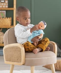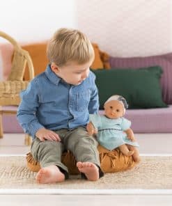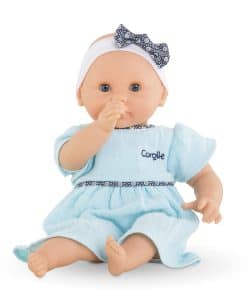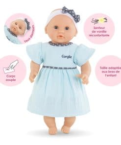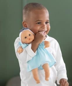 Bebe Calin Maud de Corolle es la muñeca perfecta para las mamás más pequeñas. Maud tiene un cuerpo blando relleno de frijoles que invita a acurrucarse y puede ser posado como un bebé real para un juego de pretender creativo. Diseñada en Francia y parte de la colección Mon premier para edades de 18 meses en adelante, esta muñeca de 12 pulgadas es del tamaño ideal para ser acunada en los brazos de un niño pequeño. Tiene piel de vinilo suave al tacto y con aroma a vainilla, ojos que se abren y se cierran, y viene vestida con un dulce vestido azul con diadema y lazo. Bebe Calin Maud está diseñada para ser amada y cuidada por las mamás y papás pequeños de 18 meses en adelante. Ya sea jugando a la casita o acurrucándose en la cama, esta adorable muñeca se convertirá en una compañera de juego favorita que tu hijo atesorará durante años.