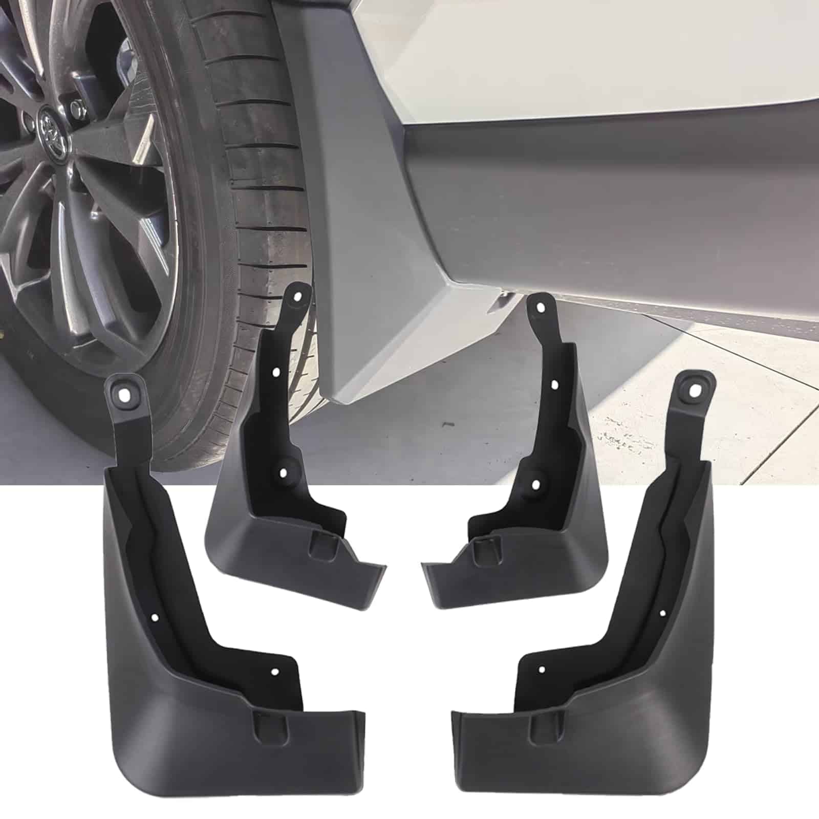Mud Flaps Compatible con Toyota RAV4 2019-2024, Delanteros y Traseros, Salpicaderos, Juego de 4 piezas. Mantenga su automóvil limpio y protegido de la suciedad y los daños causados por la suciedad de la carretera con estos salpicaderos. Fáciles de instalar sin necesidad de realizar modificaciones en su automóvil actual. Fabricados con material duradero y resistente, estos salpicaderos son el complemento perfecto para su Toyota RAV4. Proteja su automóvil y manténgalo en las mejores condiciones con estos Mud Flaps de alta calidad.