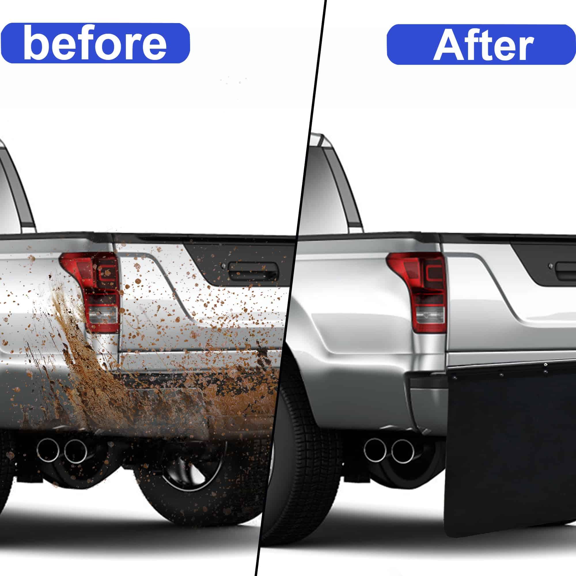 4. Protege tu Vehículo: 00108 Mudflap protege su vehículo de arañazos, suciedad, barro volando o escombros. Evite posibles daños en su pintura y bajo del coche.