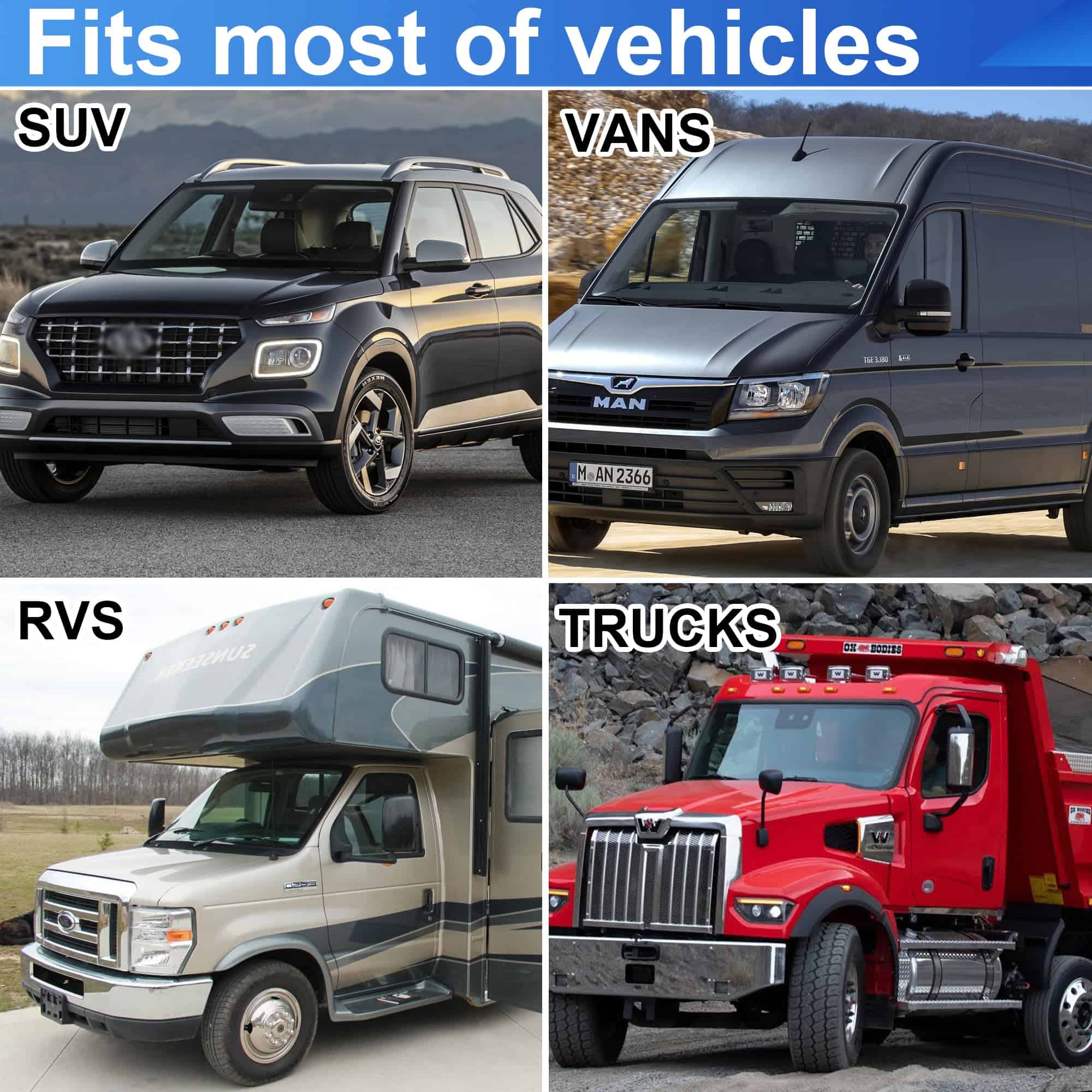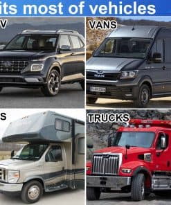 5. Se Adapta a la Mayoría de los Vehículos: Las solapas de barro montadas en enganche se adaptan a la mayoría de los vehículos como remolques, camiones, camionetas de carga o camiones de semi-remolque, remolques de viajes, remolques de barco, remolques de nieve, ATVs, RVs y otros remolques.