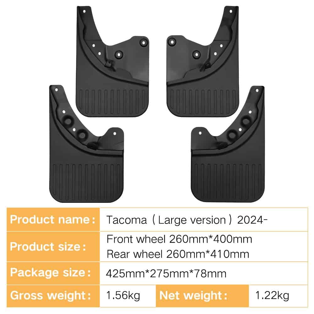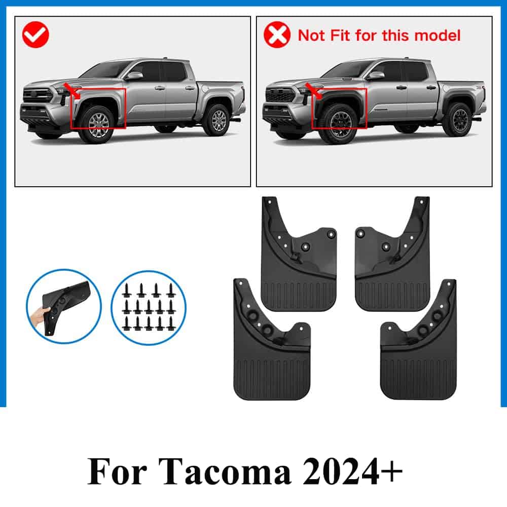Mud Flaps para Toyota Tacoma 2024 Guardias Salpicaduras Todo Clima Delanteras y Traseras Juego de 4 Sin Necesidad de Taladrar Agujeros