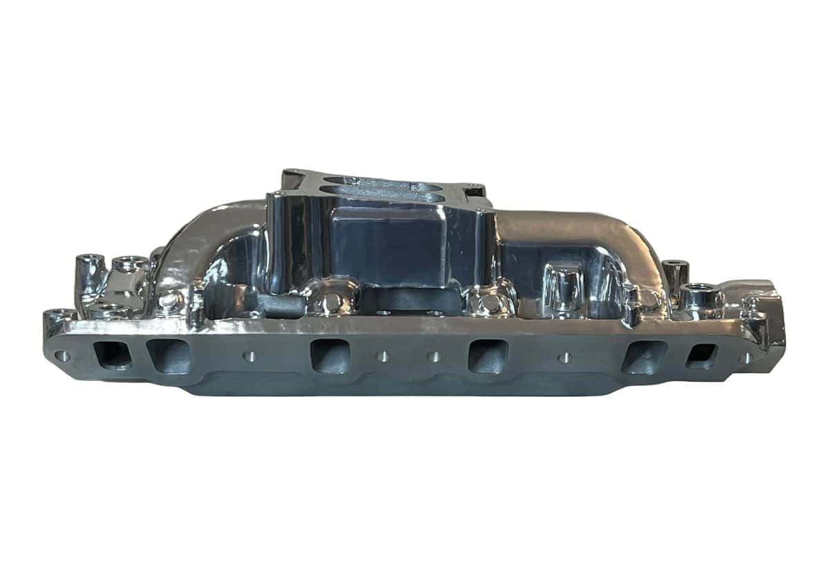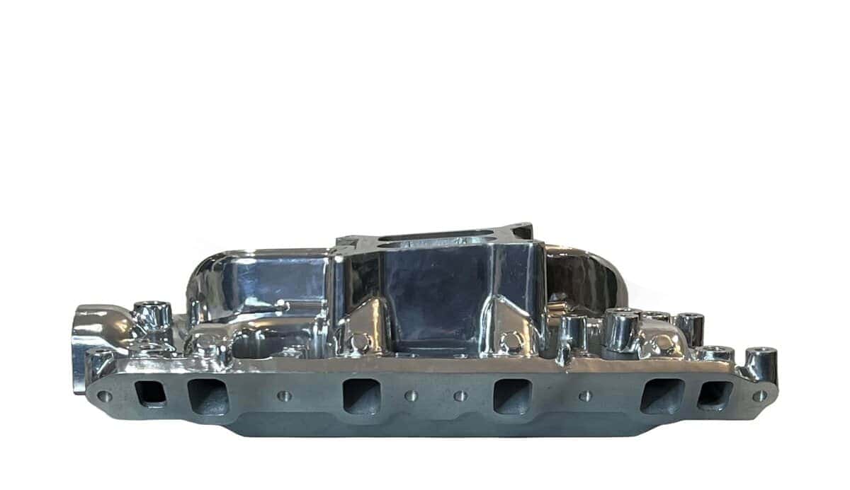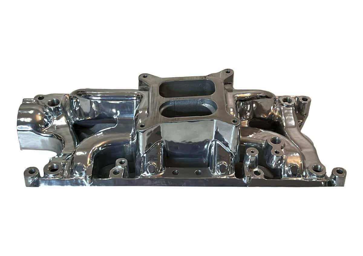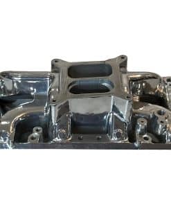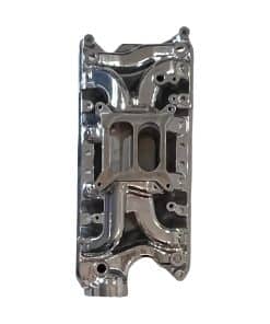 Multiple de Admisión de Aluminio Pulido para Motores Ford Small Block 260, 289, 302. Este ajuste en los años de modelo 1962 – 1991. Es un diseño de doble plano con brecha de aire. Características: Material de Admisión: Aluminio Fundido Acabado: Pulido Estilo de Admisión: Dual Plane Tamaño del Motor: 260, 289, 5.0L/302 Rango Básico de RPM de Funcionamiento: 1,500-6,500 Montaje del Carburador: Cuadrado de 4 Entradas Aplicación: Ford 1962-1965 V8 260 Ford Small Block Ford 1963-1969 V8 289 Ford Small Block Ford 1968-2001 V8 5.0L/302 Ford Small Block