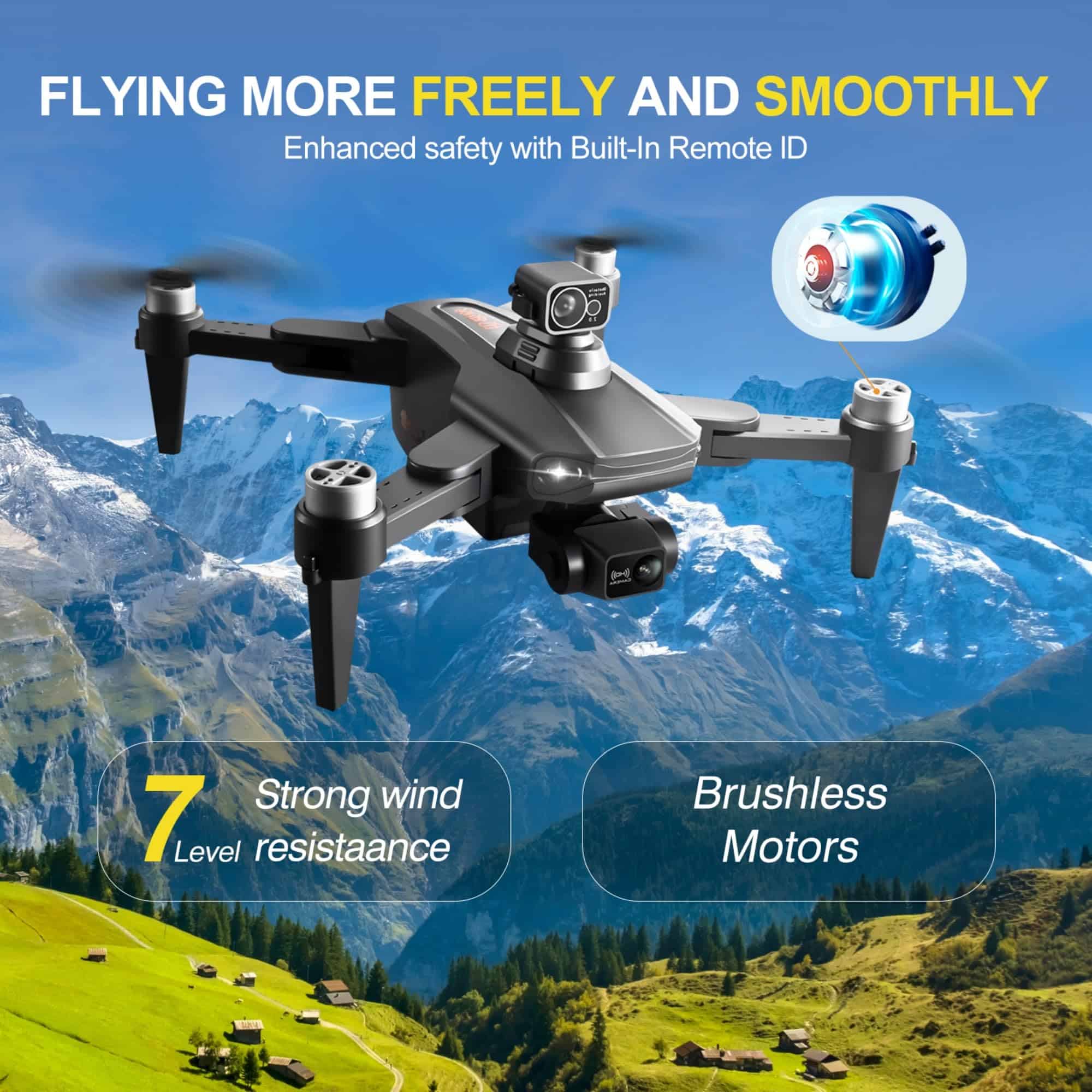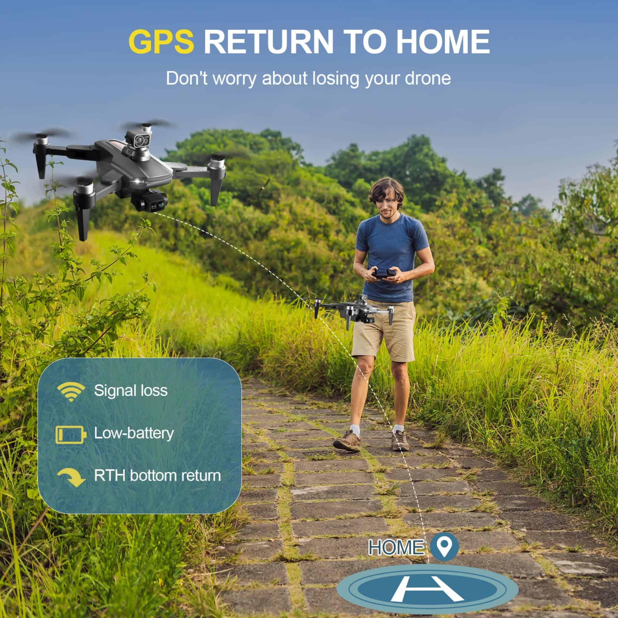 Disfruta de vuelos sin preocupaciones con la compatibilidad de FAA Remote ID, garantizando seguridad y cumplimiento. El drone RG106PRO-3 AXIS GPS es compatible con FAA AIR. La cámara UHD 2UHD con EIS del drone y el estable y potente motor brushless de 3 ejes garantizan una estabilidad de vuelo sólida, además de capturar impresionantes videos 4K y fotos de 12MP. Una cámara mejorada de disparo frontal y de disparo hacia abajo captura escenas claras, liberando infinitas posibilidades creativas. La cabeza de evitación de obstáculos 360° láser puede percibir obstáculos por delante y evitar activamente obstáculos de pared sin preocuparse por los riesgos de vuelo. Con una configuración de batería de 60 minutos de tiempo de vuelo, el dron RG106PRO 4K, alimentado por un dispositivo de batería dual, tiene una duración de vuelo de 2×30 minutos y puede volar durante 60 minutos, proporcionando tiempo suficiente para fotografía aérea ininterrumpida. Debido al agotamiento de la batería, ya no hay preocupación por el aterrizaje. La luz indicadora de la batería lo mantendrá informado de la capacidad actual, garantizando una carga oportuna y un tiempo estimado de vuelo restante del dron. El universal gimbal brushless de RG106PRO, drone GPS, garantiza tomas suaves y estables a velocidades de viento de hasta 45km/h. La precisión del GPS y el retorno automático a casa del drone RG106PRO rastrea fácilmente y registra tu vuelo a través de datos de pantalla en tiempo real. La función de retorno a casa inteligente de los drones remotos asegura que, incluso en caso de poca batería o pérdida de señal, se pueda presionar un solo botón para regresar de manera segura al punto de despegue.