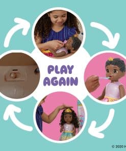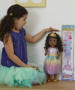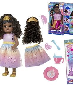 ¿Cuándo crecerá y se convertirá en una hermosa princesa? ¡Baby Alive Princess Ellie Grows Up! es una muñeca Baby Alive que crece! ¡Fantásticas muñecas para niñas y niños de 3 años en adelante! ¡Esta muñeca parlante crece poco a poco con el cuidado de los niños y responde con más de 75 sonidos y frases! ¡Suena un carillón tintineante cuando crece! ¡Como bebé, crece lentamente al mecerla, usar chupete y alimentar con su taza de beber y bol/cuchara simulados! ¡Los movimientos de rebote y la alimentación/bebida simuladas la ayudan a seguir creciendo! ¡Los niños se divertirán siguiendo su altura con el cuadro de crecimiento incluido y vistiéndola con la ropa de muñeca Baby Alive y los accesorios de Baby Alive! ¡Coloca la extensión de pelo de tiara en su cabeza y pon la falda de princesa sobre su atuendo para completar su look real! ¡Las instrucciones y la guía de inicio rápido ayudan a los niños a cuidar de su muñeca en crecimiento y reiniciarla para jugar de nuevo! ¡Estas muñecas Baby Alive que crecen son juguetes de princesa emocionantes para niñas y niños de 3 años en adelante, y son excelentes regalos para los niños! ¡Baby Alive y todas las propiedades relacionadas son marcas registradas de Hasbro.