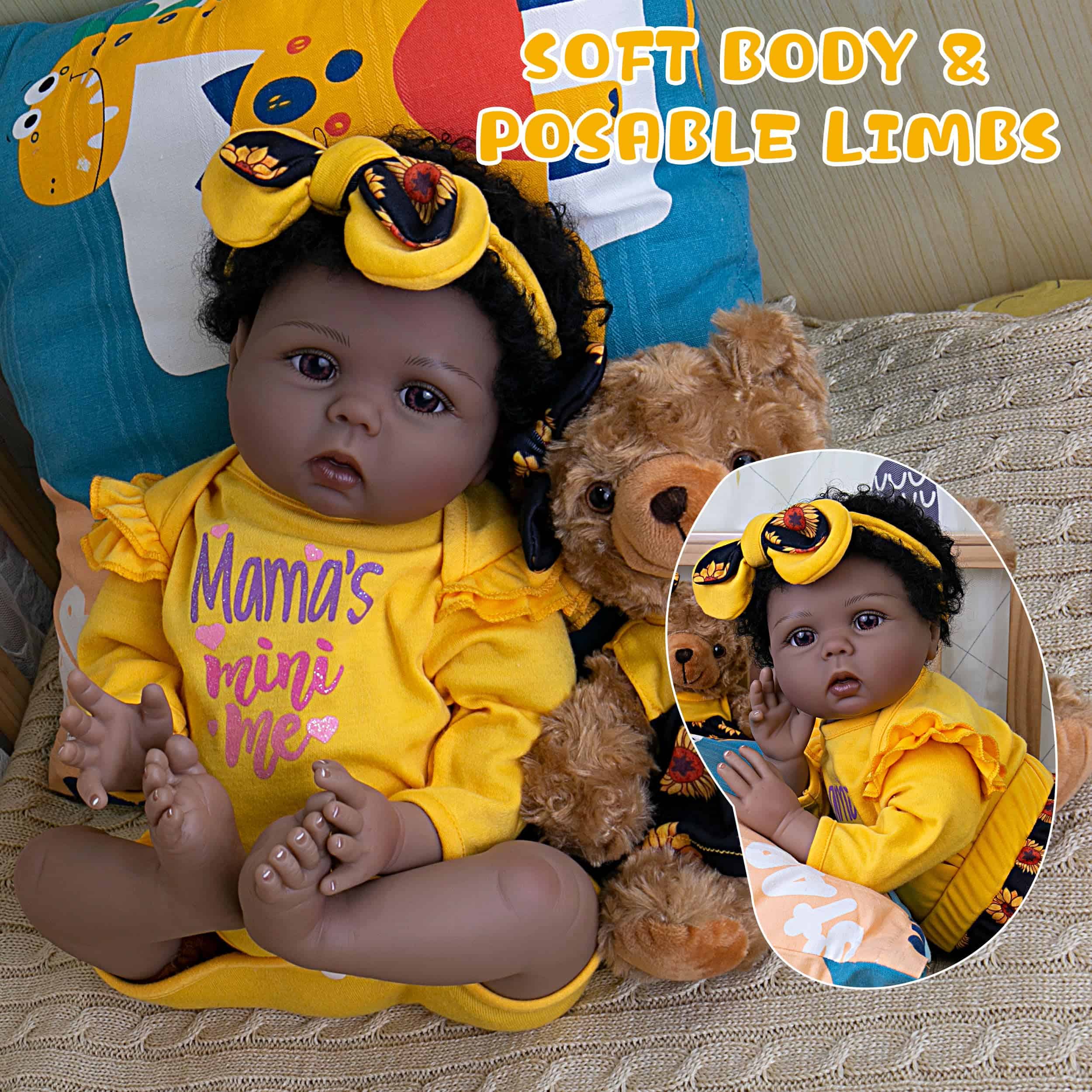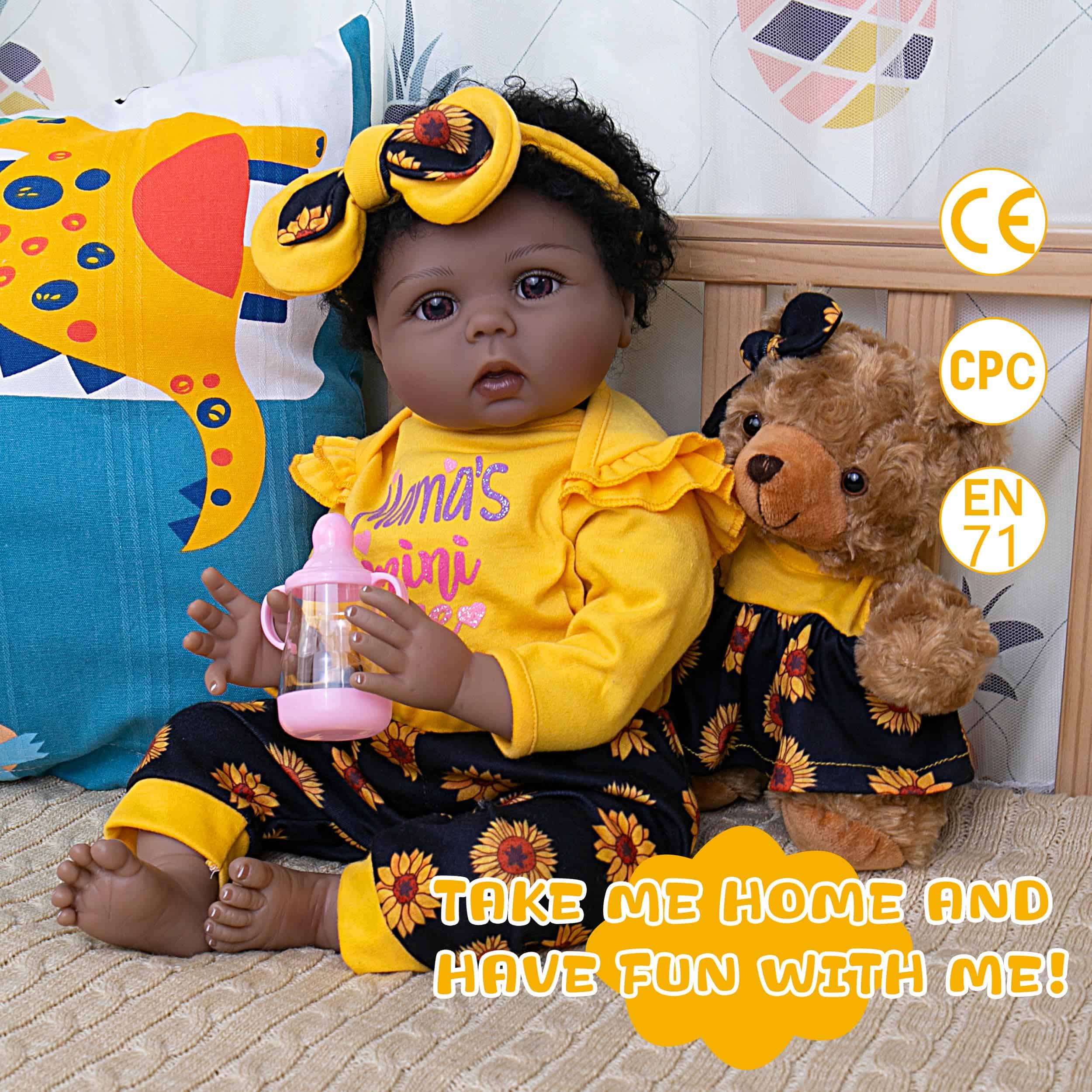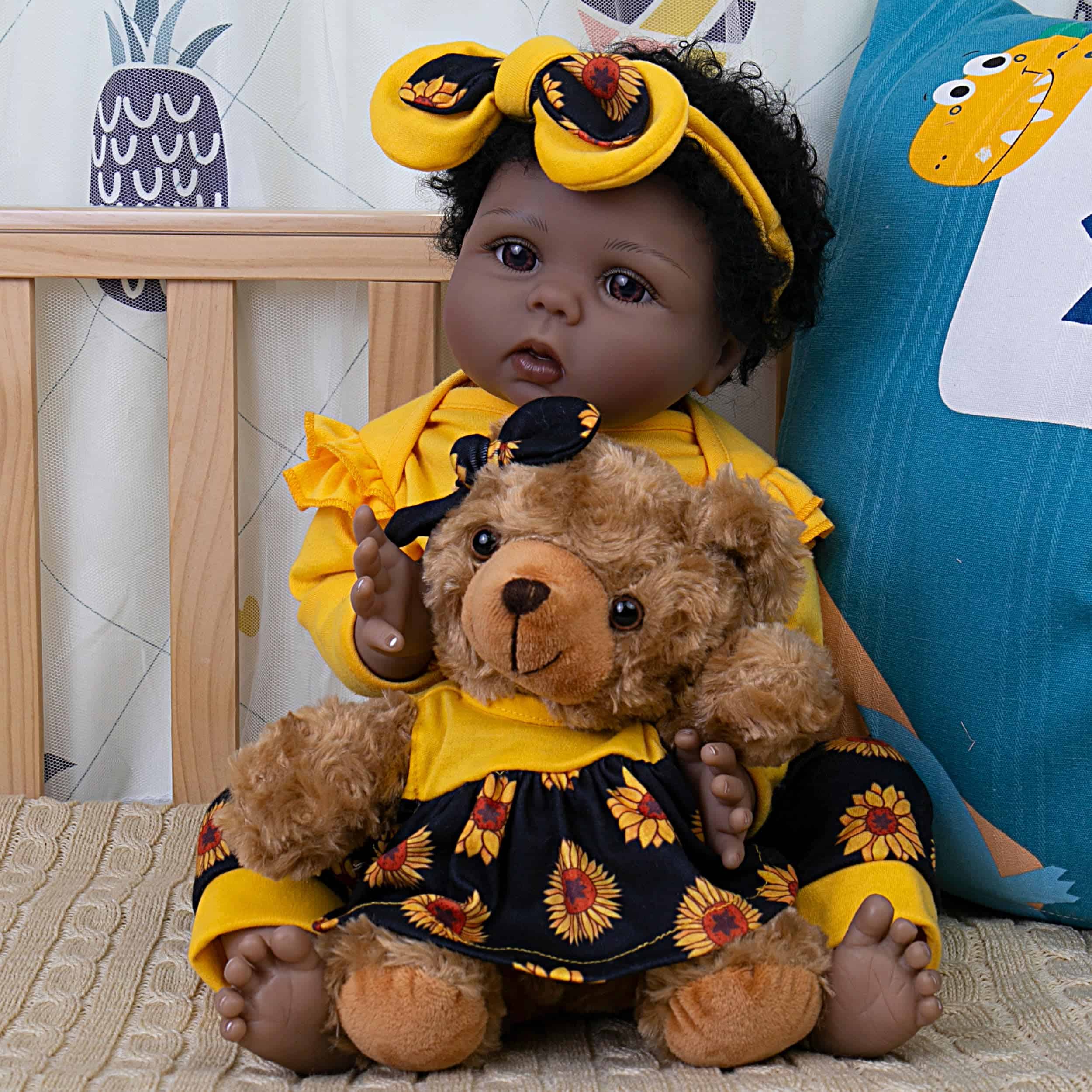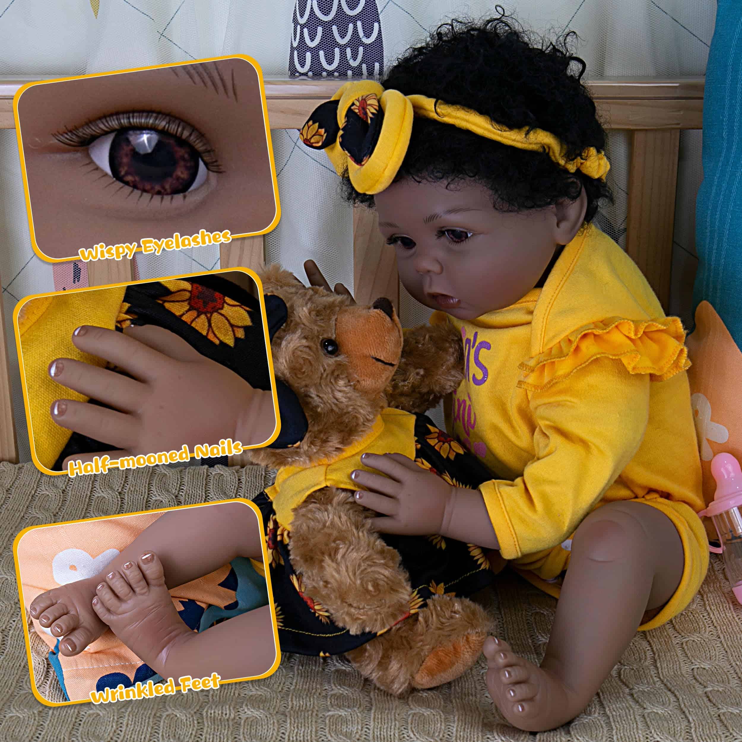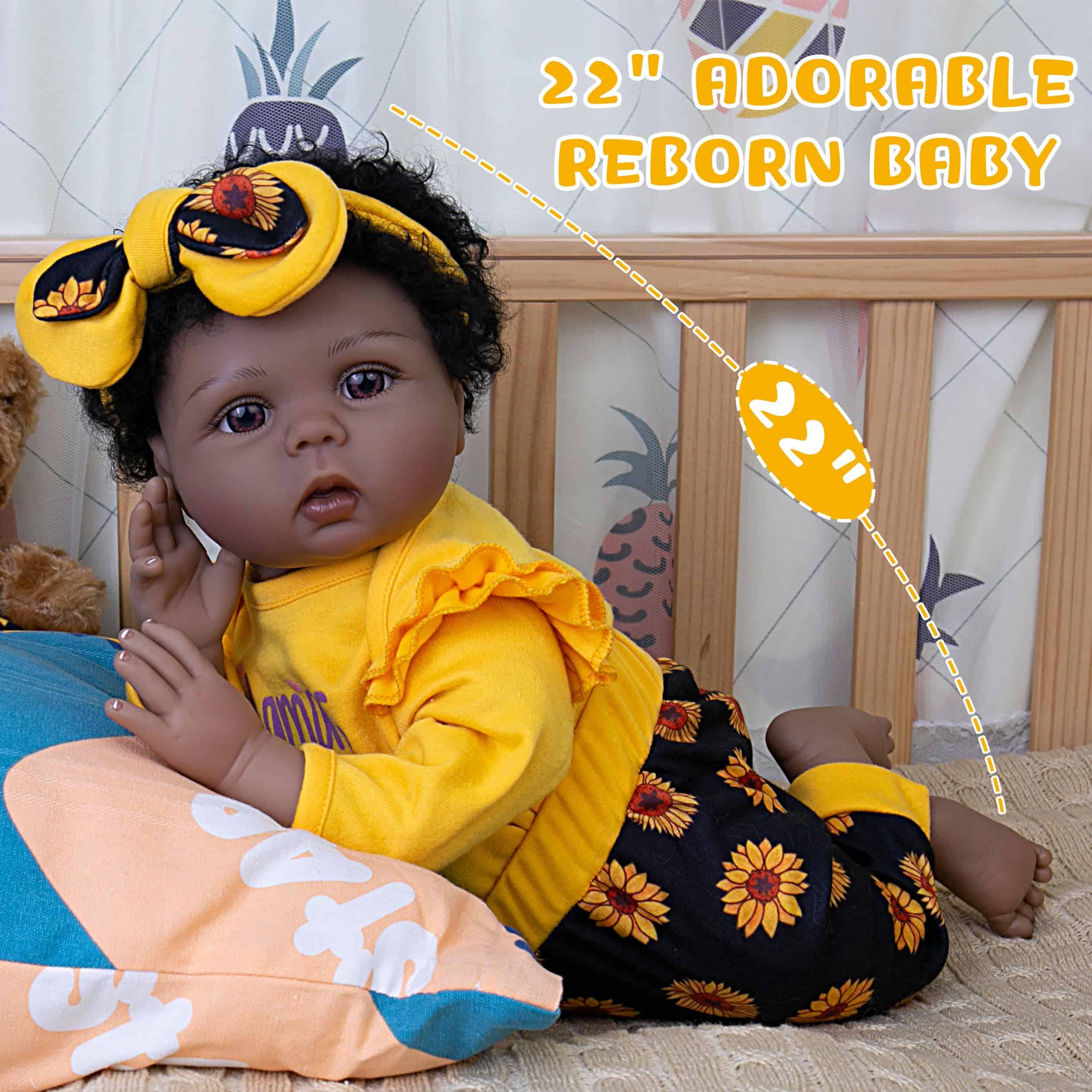 Muñeca Bebé Realista Reborn Niña Negra de 22 pulgadas