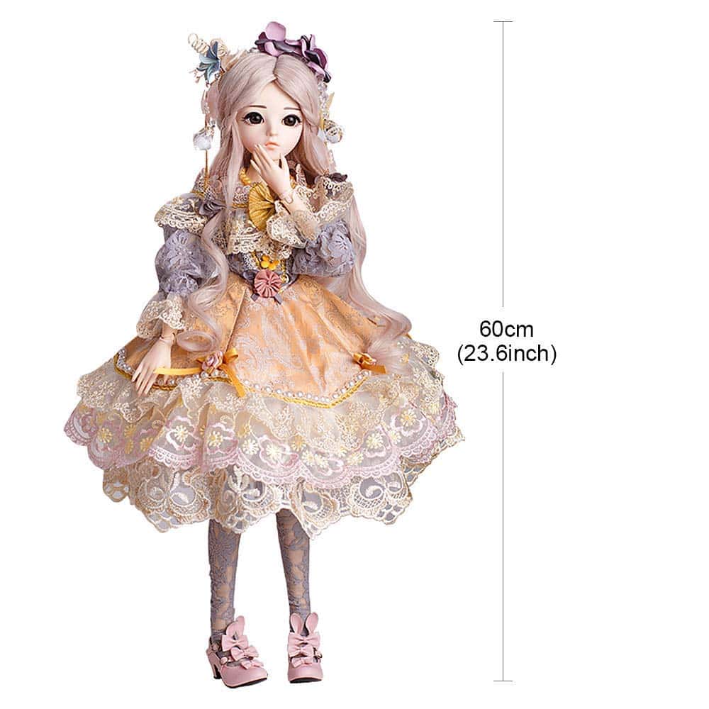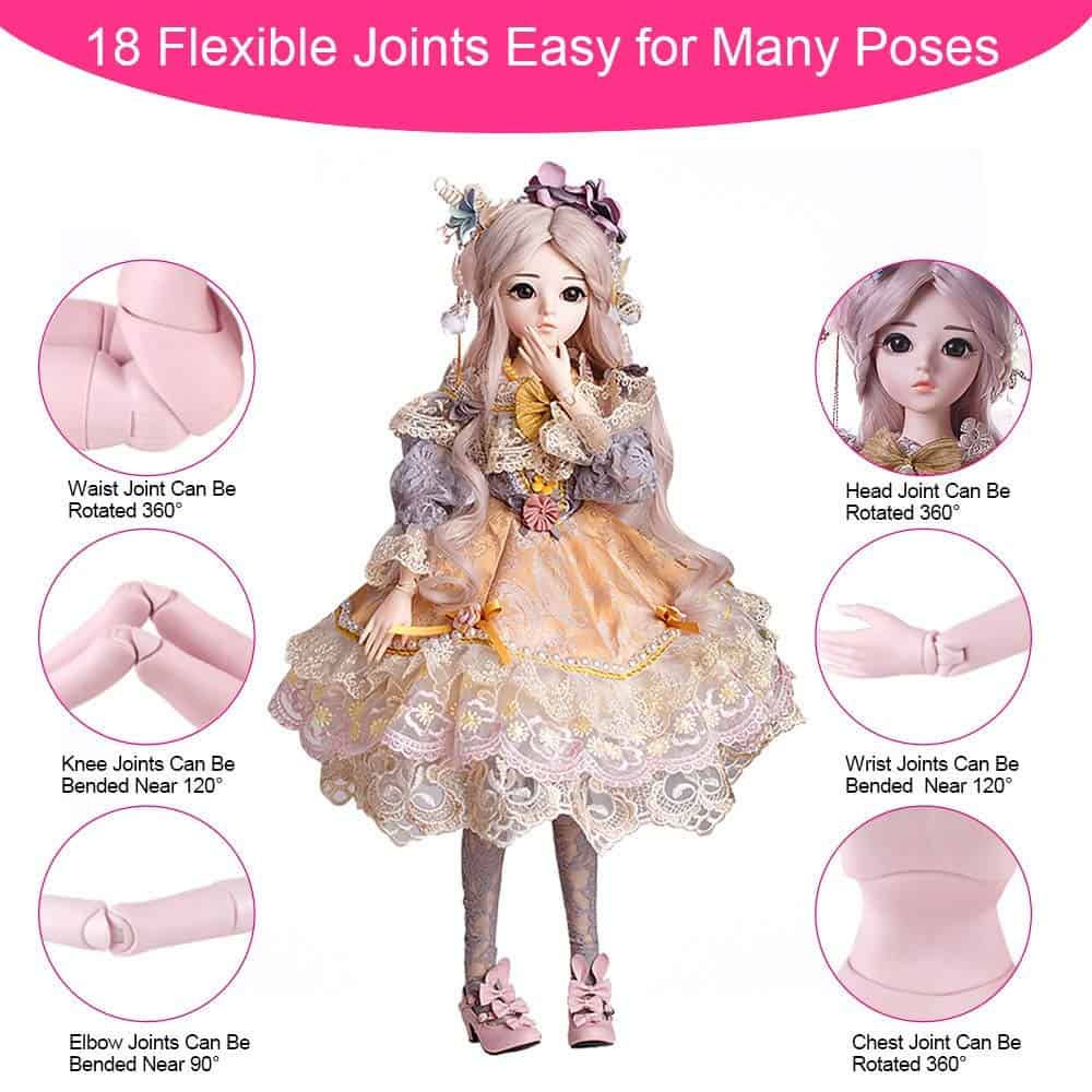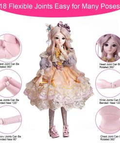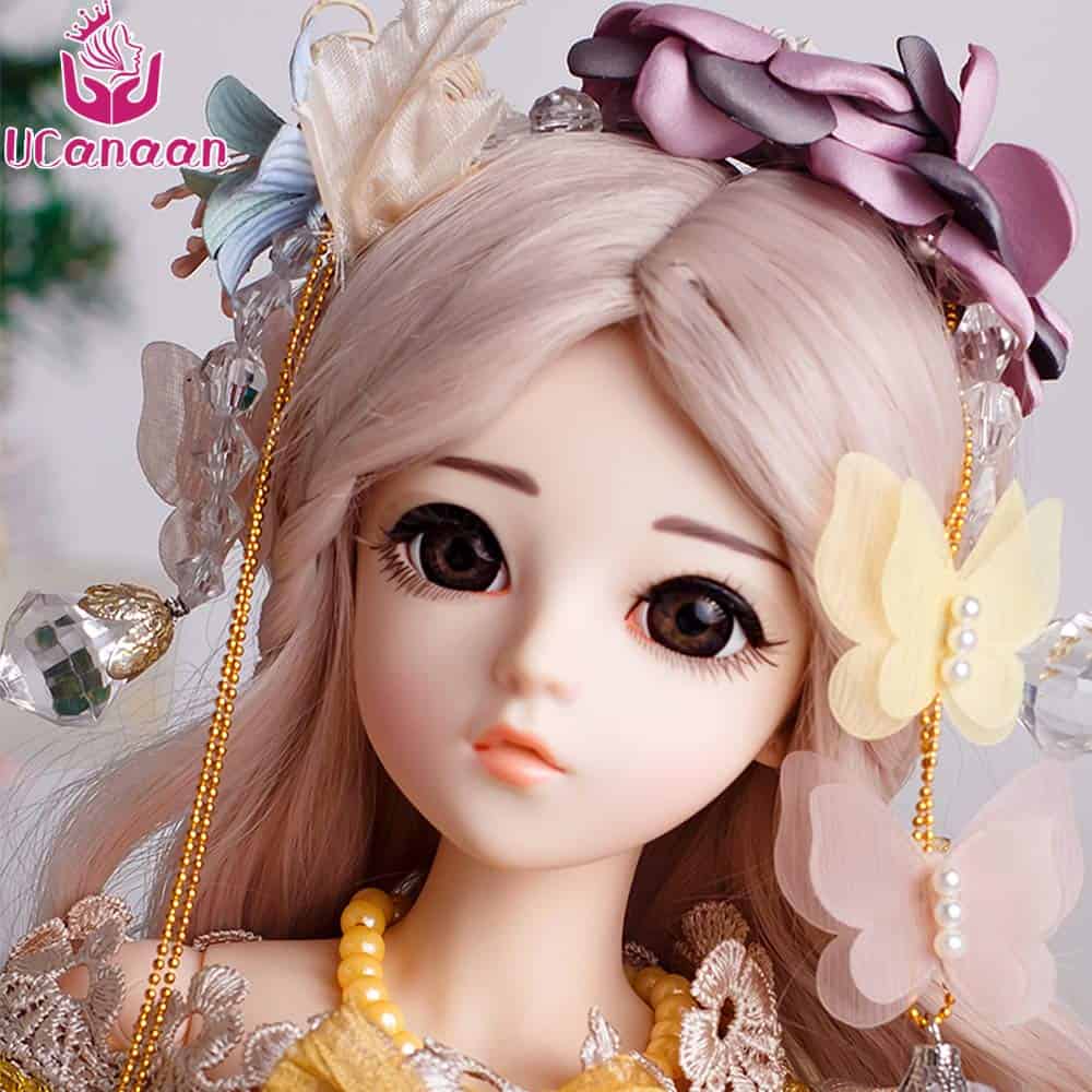 UCanaan Muñeca BJD 1/3 de 60 cm de altura con 18 muñecas articuladas (Peluca + Zapatos + Ropa + Cabello + Ojos)