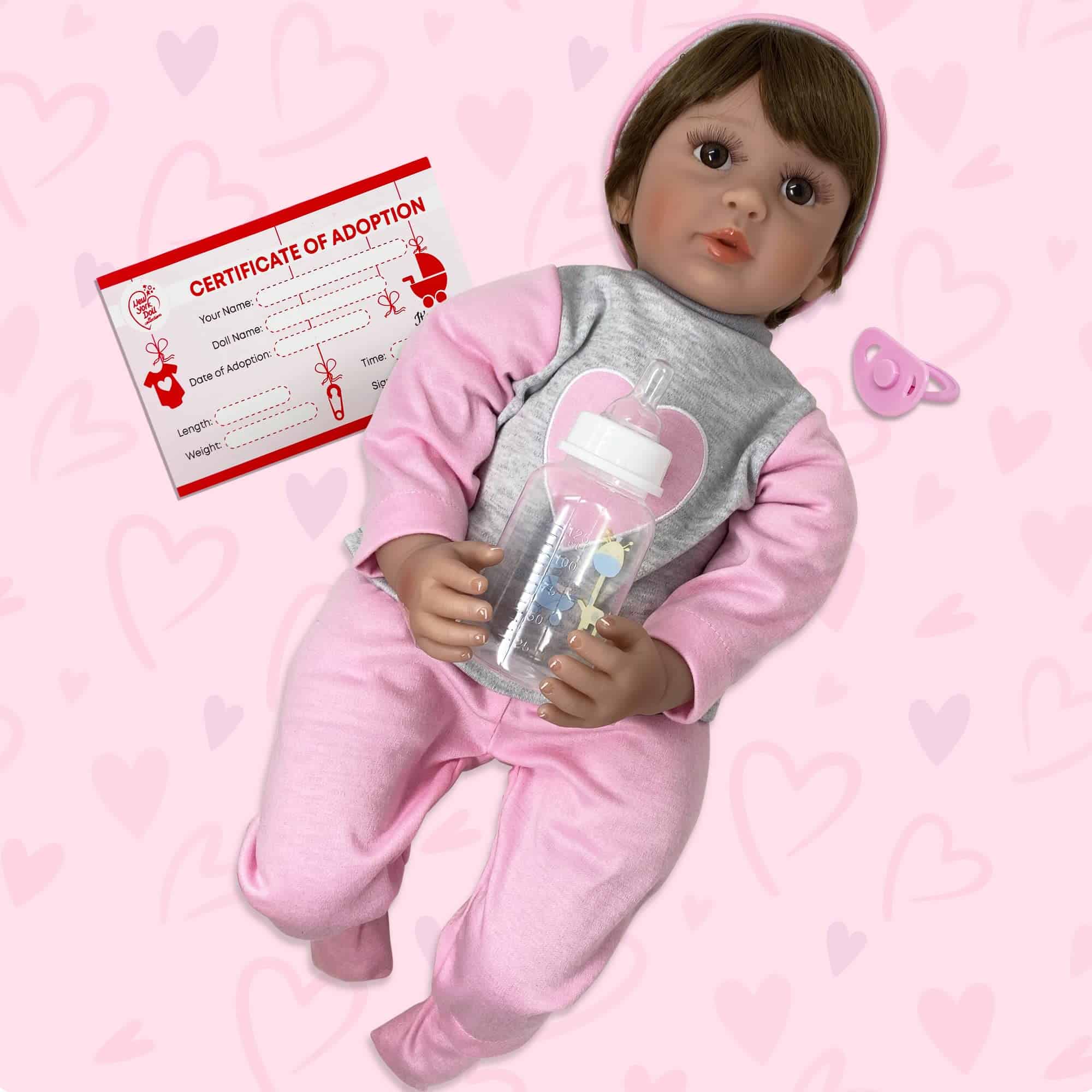 22 pulgadas de largo, esta muñeca renacida se asemeja lo más posible a la realidad. La muñeca de bebé realista que a las niñas les encanta, nuestra muñeca de bebé de la vida real es suave y acogedora, mejorada con una dulce expresión angélica y terminada con cabello sintético para dar la impresión única de que es genuinamente real. Incluye certificado de adopción para fomentar la responsabilidad. Viene con juguetes y accesorios adicionales para el juego inmediato fuera de la caja. Perfecta para preparar a los futuros hermanos mayores. Empaquetado en caja, listo para regalar. Recomendado para niños y niñas de 3 años en adelante.