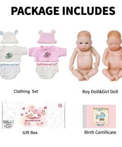 Tamaño: muñeca de bebé recién nacida de 10 pulgadas con lindo traje y sombrero. Tamaño perfecto para niños de 3 años en adelante. Cuerpo completo de silicona: Hecho de vinilo lavable, suave y liso. Límpialo con un paño húmedo si la muñeca se ensucia.