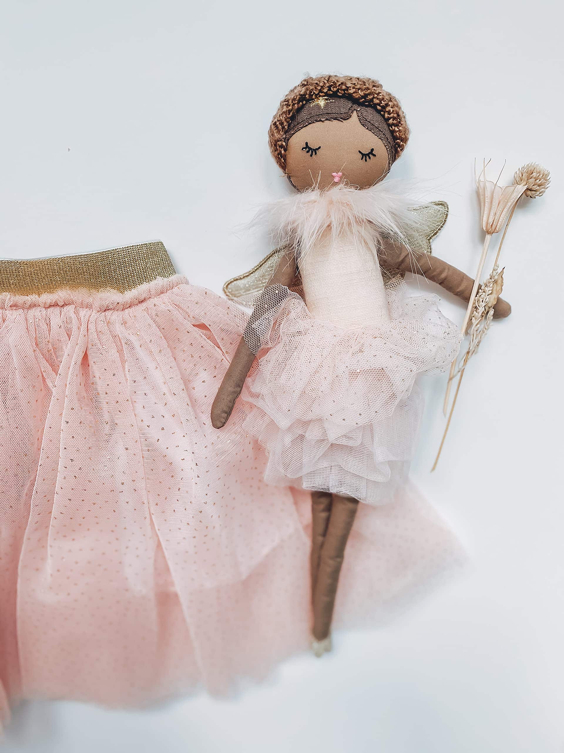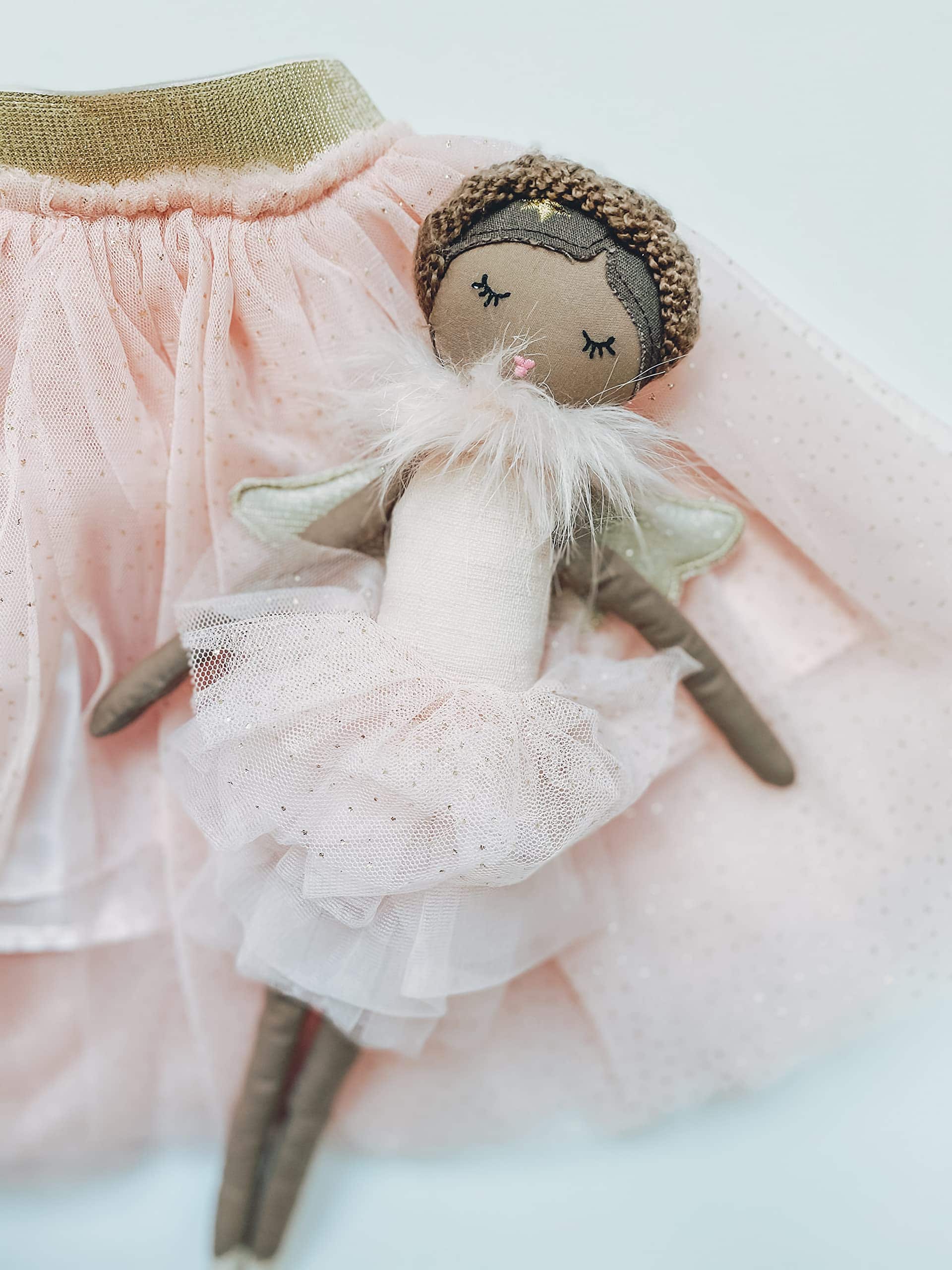 Presentamos a Ada, la muñeca ángel, ¡quien rápidamente se convertirá en la nueva mejor amiga de tu hijo! Debido a que es increíblemente suave y porque su diseño cuenta con una exquisita atención al detalle, esta hermosa muñeca de peluche es el regalo ideal para cualquier jovencita. Vestida con un vestido de tul y alas doradas brillantes, Ada está lista para vigilar a tu pequeño. Esta muñeca ángel será atesorada durante muchos años, ya sea como regalo en una ocasión especial o como regalo de cumpleaños.