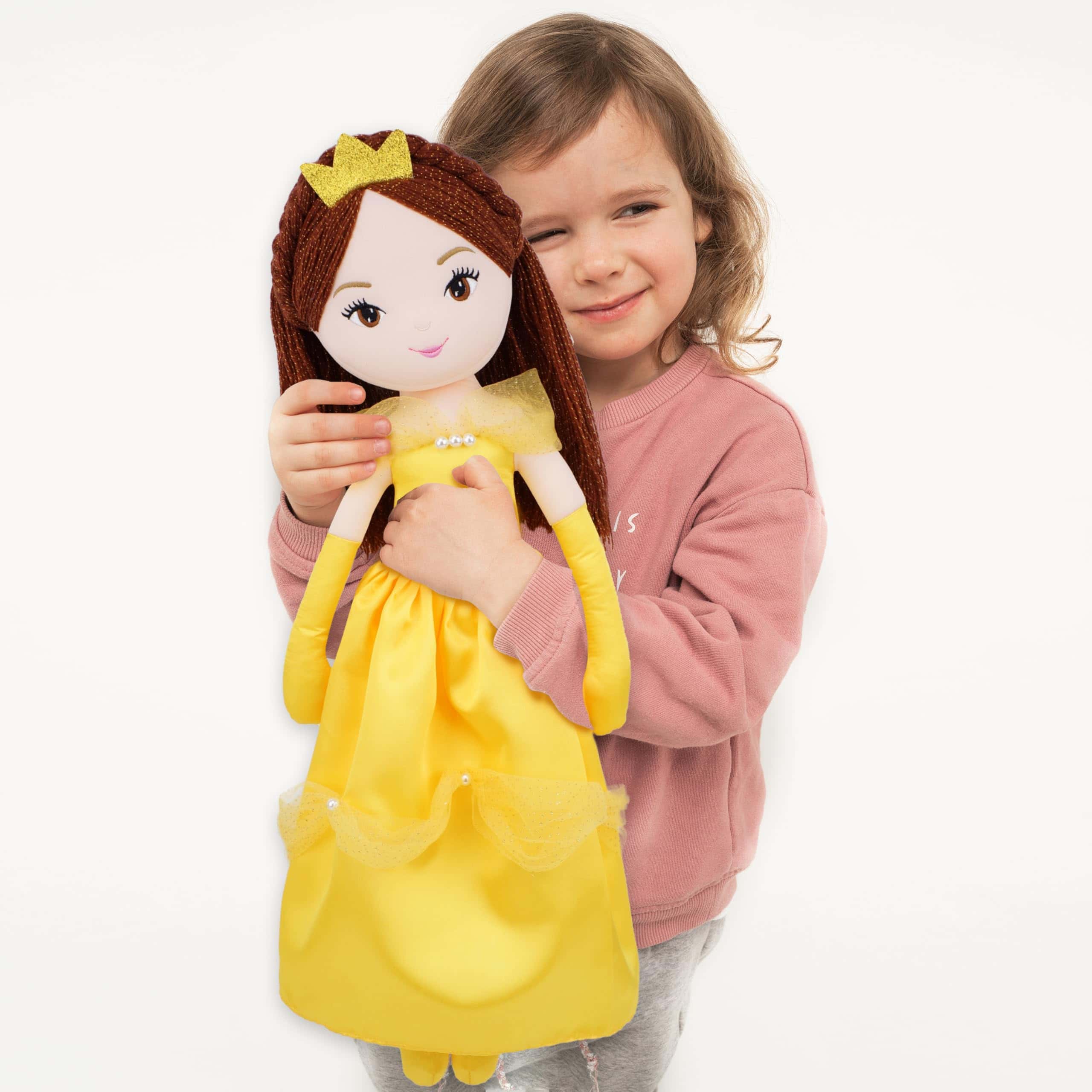 2. Amiga real: Esta muñeca de peluche de 30″ de altura, con su cálidos cabellos y ojos marrones, será una compañera leal y real para todas las recreaciones de cuentos de hadas de su hijo.
