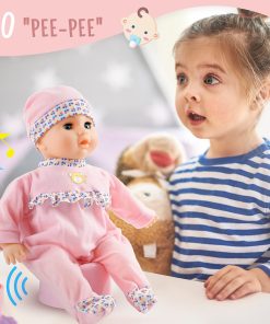 2. Muñecas con diferentes sonidos: Para brindar la mejor experiencia, esta muñeca tiene 6 voces diferentes. Puede hacer sonidos al beber leche, reír, llorar, canturrear, y hacer los sonidos de «papá» y «mamá».