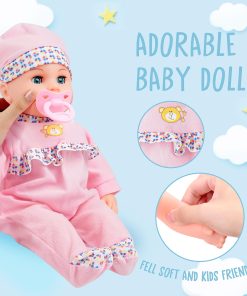 4. Material seguro y suave: La muñeca rosada bebé está hecha de material seguro, no contiene bisfenol, es respetuosa con el medio ambiente y es lo suficientemente segura para los niños. Más importante aún, todos los accesorios no tienen bordes afilados, por lo que tu hijo no será dañado.