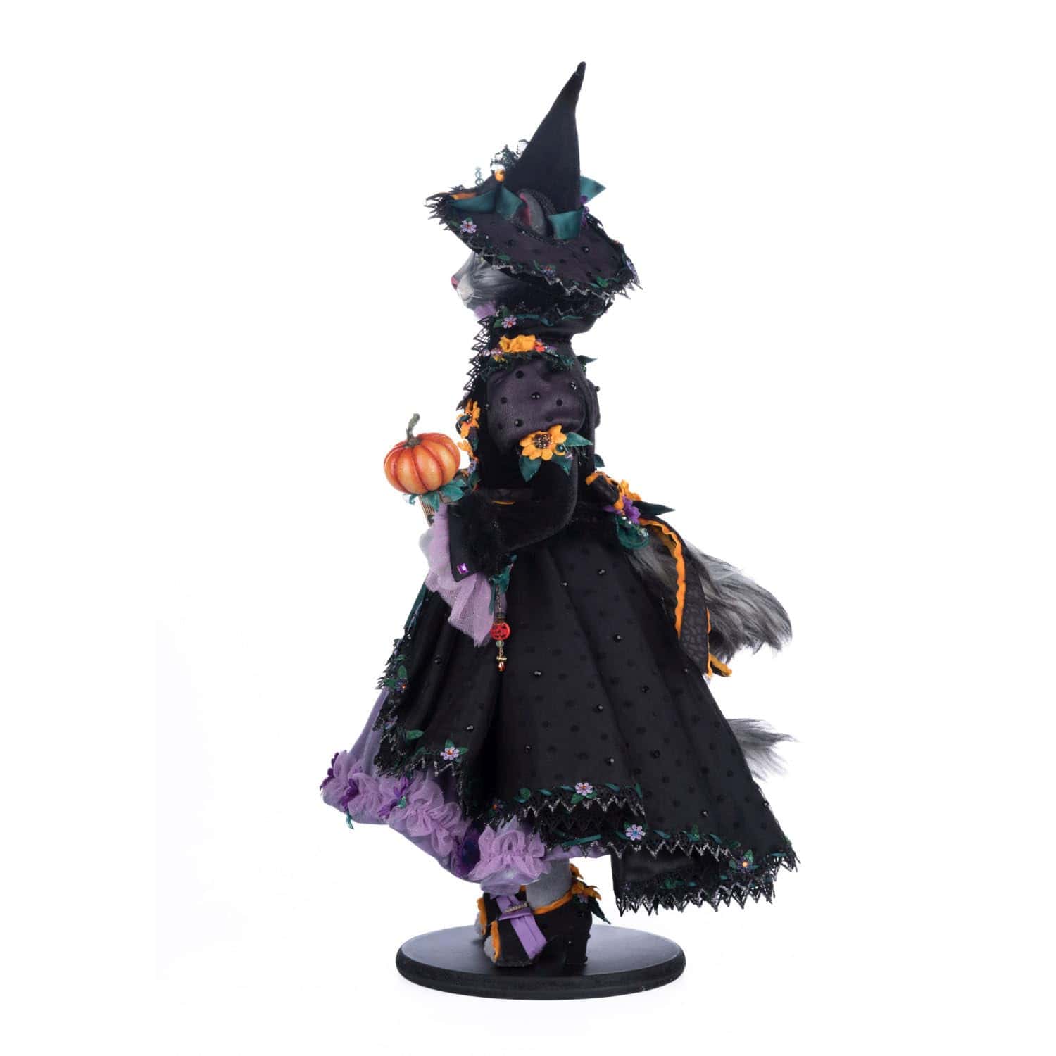 2. DIMENSIONES DEL ESPÍRITU DE HALLOWEEN: Con dimensiones de 12.5″ x 11″ x 25″, esta muñeca de gato negro encarna la dosis juguetona del espíritu de Halloween, ofreciendo ricos púrpuras, profundos naranjas y un toque de capricho gótico.