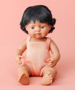 Muñeca Miniland de origen hispano. Esta muñeca pertenece a la colección Edición Colorida de Miniland, que promueve valores de igualdad entre niños y niñas, independientemente de su origen, género o condición, y les permite tomar conciencia de la diversidad y desarrollar habilidades sociales como la empatía y la tolerancia.