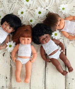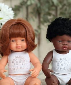 A los niños les encanta cuidar sus propias muñecas, y estas muñecas anatómicamente correctas de Miniland son algunas de las muñecas más hermosas del mercado. La gran variedad de características y etnicidades ayuda a los niños a crecer en un mundo diverso e inclusivo. Estas muñecas cuentan con brazos y piernas articulados, lo que permite a los niños vestir y posar la muñeca acostada o sentada. Y vestirse será un placer con nuestra ropa de muñecas de bebé de Miniland, una adición encantadora a la colección de muñecas de tu hijo. Visita nuestra tienda para descubrir todos los tamaños y modelos.
