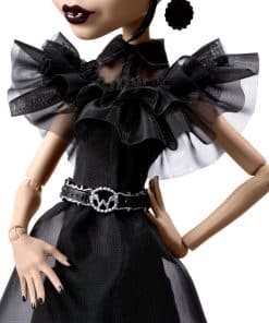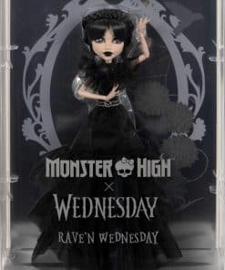 Las mentes detrás de Monster High y Wednesday han colaborado para crear una línea de muñecas bellamente escalofriantes inspiradas en la exitosa serie de televisión. Inspirada en el vestido de su personaje en la viral escena de baile de la serie, esta muñeca coleccionable Rave�N Wednesday es increíblemente hermosa en un vestido gótico. Con su falda fruncida hecha para bailar, está lista para salir a la pista de baile como un espíritu poseído. La muñeca no puede permanecer de pie por sí sola. Se incluye soporte para la muñeca y Certificado de Autenticidad. Los colores y decoraciones pueden variar.
