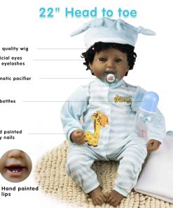 Muñeca Negra de 22″ JRLCGYP, Realista Bebé Reborn de