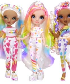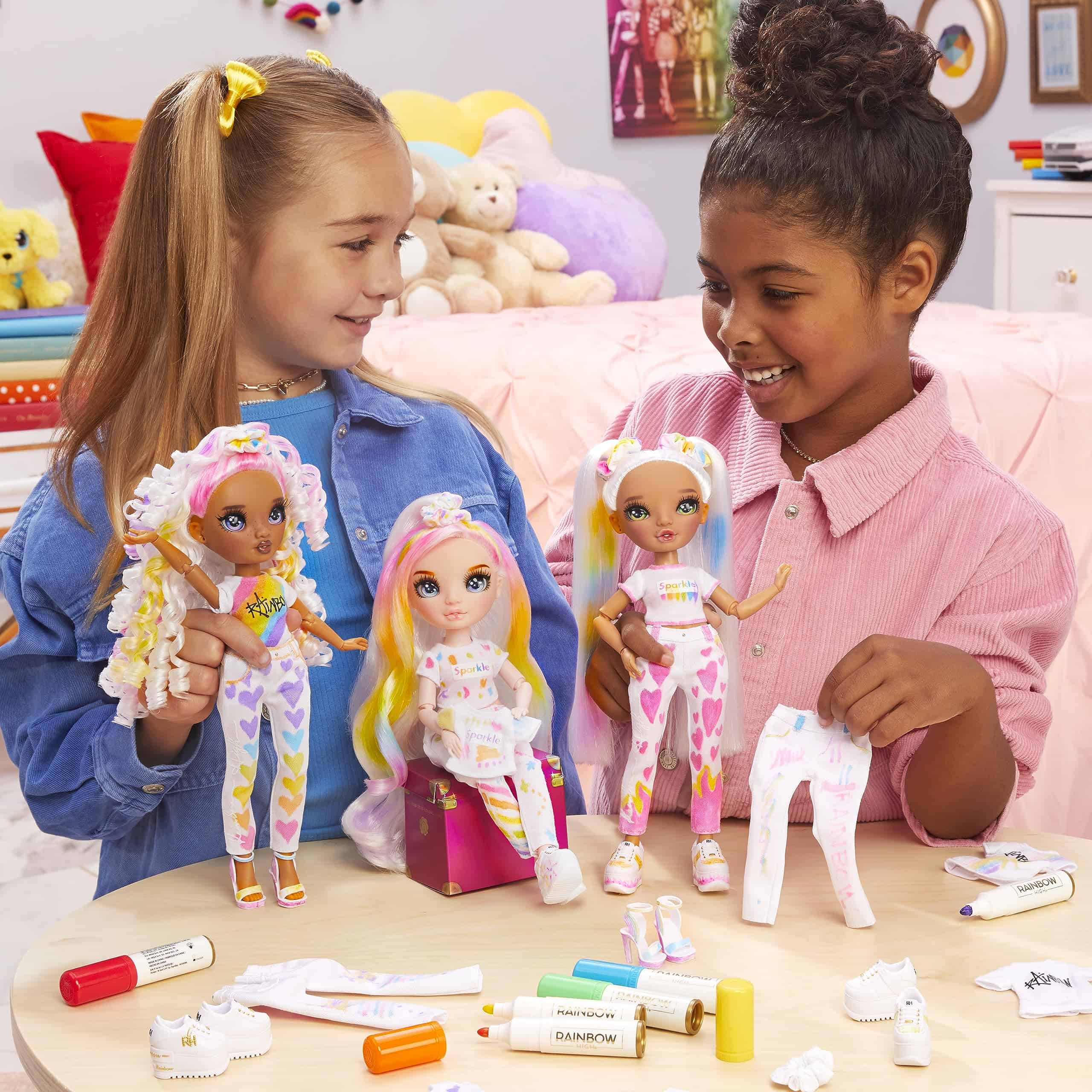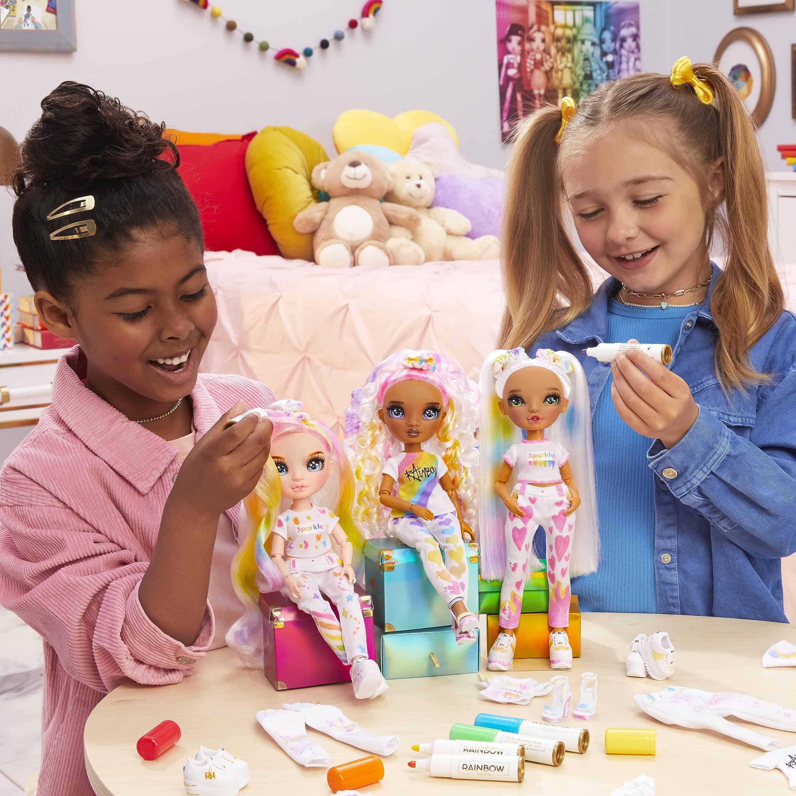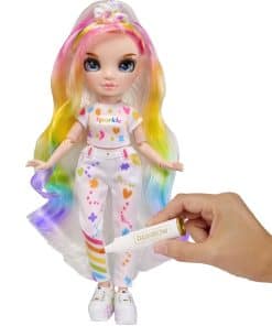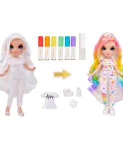 ¡Deja que tus verdaderos colores BRILLEN! Al igual que un arcoíris, la marca de muñecas de moda Rainbow High es una marca de juguetes única que inspira a los niños a ser únicos. La línea de muñecas de moda coloridas, distintas e inclusivas fomenta la creatividad en sus historias, arte y personalidades, siempre siendo fieles a quienes desean ser. ¡Inspira creatividad! Con Color & Create, es tan fácil crear tu propia muñeca Rainbow High DIY personalizada. Con los marcadores arcoíris lavables incluidos, puedes colorear el cabello, la ropa, los zapatos y la scrunchie. Incluso puedes crear diseños personalizados fáciles: corazones, arcoíris, rayas, lo que puedas imaginar. Y lo mejor de todo, puedes hacerlo una y otra vez. Solo enjuaga y repite tantas veces como quieras. Es tan fácil.