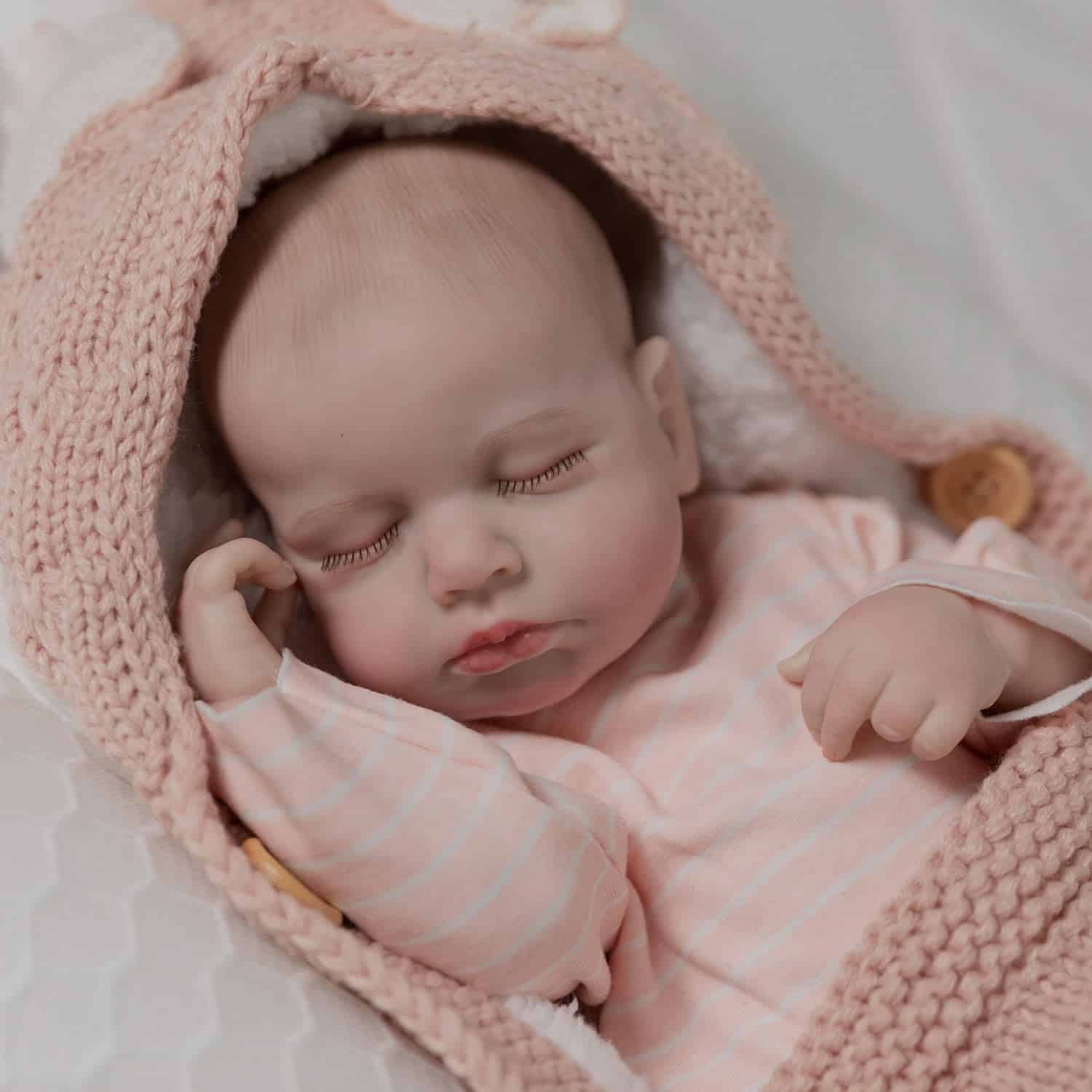 4. Alta calidad: Esta muñeca tiene cejas pintadas a mano y pestañas pegadas a mano. Su cara adorable la hace parecer un bebé realmente real. Cumple con los requisitos de seguridad de ASTM F963 y EN71 para edades de 3 años en adelante, ¡por lo que es seguro para tus hijos!
