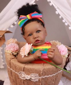 La muñeca reborn mide 58 cm de la cabeza a los pies, con un cuerpo suave ponderado para una sensación de bebé real, los niños pueden llevarla a todas partes. La muñeca puede lucir ropa de bebé recién nacido. Tiene ojos azules aplicados a mano, hermoso cabello negro enraizado hecho a mano, con brazos y piernas movibles y poseíbles. Una expresión realista hará que tus hijos se sientan como jugando. La muñeca es una excelente elección para regalo de cumpleaños de niños, regalo de Navidad, actividad en casa y de preescolar, juego de roles y cuidado. La muñeca reborn es también una buena elección para acompañar a la abuela y para la colección de coleccionistas. La cabeza, brazos y piernas de la muñeca están expertamente construidos con vinilo de silicona, que cumple con los requisitos de seguridad de ASTM F963 y EN71 para edades 3+ y es seguro para tus hijos. El paquete incluye: Muñeca reborn 1, Trajes 1 (igual que en la imagen), Chupete magnético 1, Biberón 1, Pañal 1, Certificado de nacimiento 1, Caja de regalo 1.