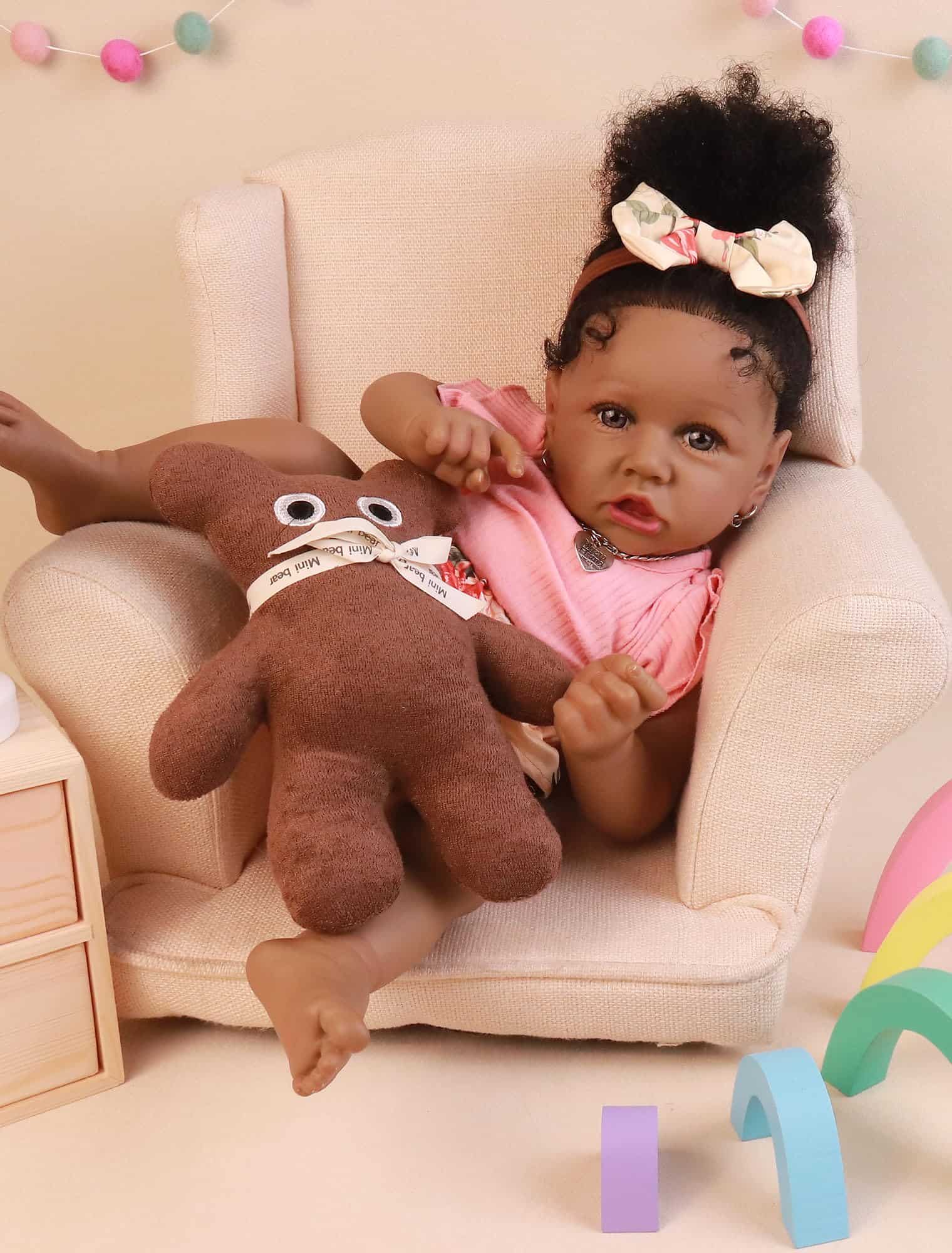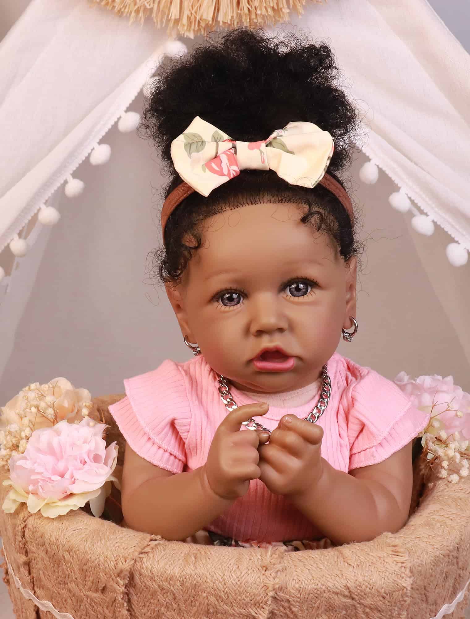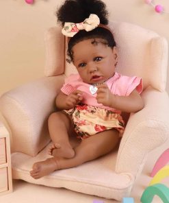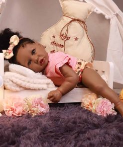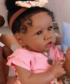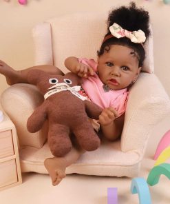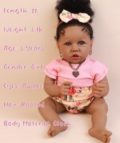 Material – Vinilo de silicona de alta calidad. La cabeza, brazos y piernas de la muñeca están expertamente elaborados con vinilo de silicona, los hombros y el cuerpo son de tela rellena. Te sentirás muy bien al tocar a la muñeca. Las extremidades son móviles, la muñeca puede sentarse y acostarse fácilmente, pero NO puede pararse ni hablar. Cabeza – La cabeza tiene un tamaño realista de bebé, muy linda. Pestañas aplicadas a mano. Pelo – Su cabello es muy fácil de cuidar. Ojos – La muñeca tiene unos ojos grandes y encantadores, hechos de acrílico de alta calidad, parecen los ojos reales de un bebé, claros y brillantes, extremadamente realistas. Pero los ojos no pueden parpadear ni cerrarse. Los párpados dobles son muy bellos, como si los ojos del bebé parpadearan. Las fosas nasales están abiertas, como si la muñeca estuviera respirando. La piel es el lugar más único de esta muñeca, los diseñadores dedicarán mucho tiempo a hacer que la piel del bebé parezca más realista mediante procesos de fabricación de varias capas. Después de un tratamiento especial, el color no se desvanecerá. Esta muñeca es una artesanía 100% hecha a mano con pintura a mano.