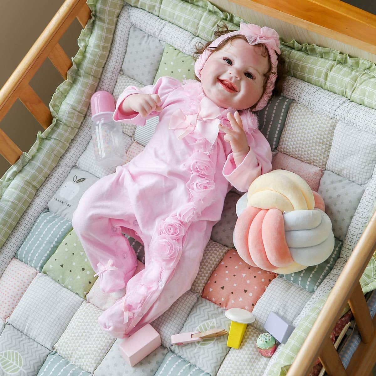 Nuestras adorables y realistas muñecas renacidas están hechas de materiales de alta calidad (vinilo de silicona, ropa, ojos acrílicos, cabello de fibra y otros materiales de accesorios), seguros, no tóxicos para tus hijos, materiales puros respetuosos con el medio ambiente con un tacto suave y cómodo. La muñeca vendrá con trajes. Será amiga de tu bebé y de tu familia. Esperamos que la ames.