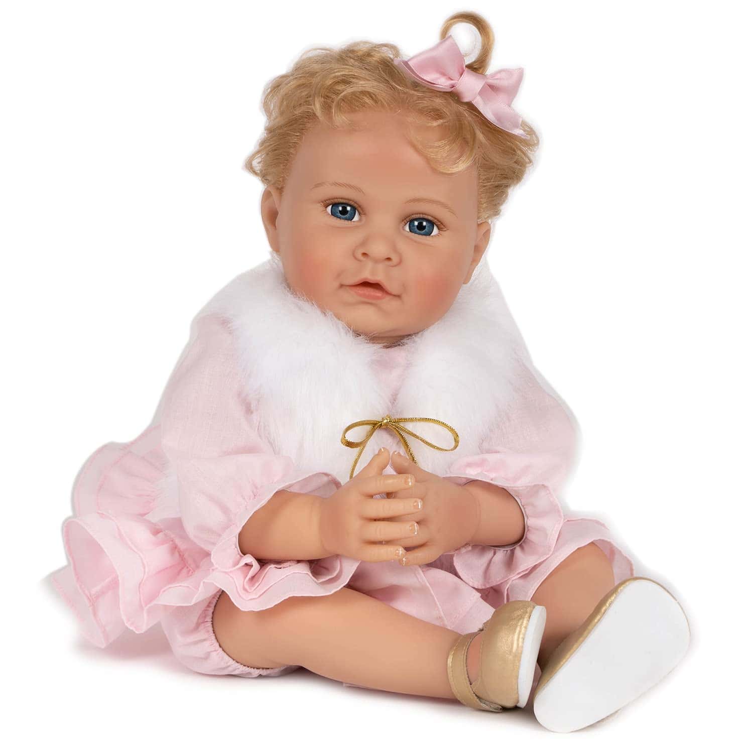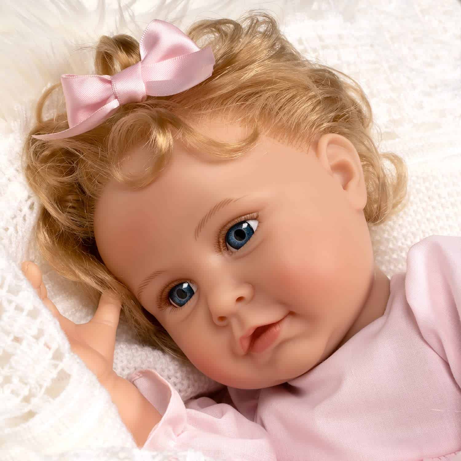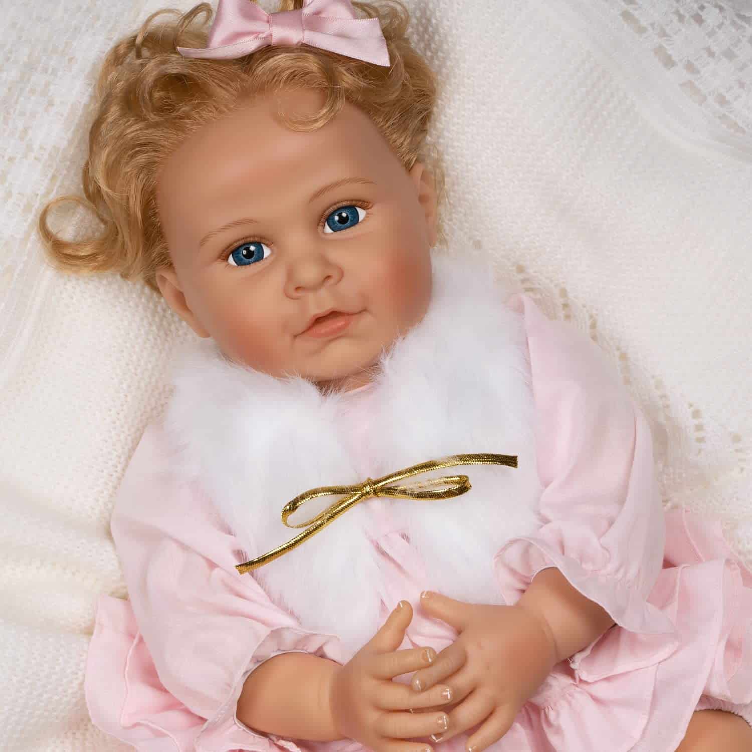 Muñeca realista Reborn de Paradise Galleries, diseñada por la artista Karen Scott. Esta muñeca de 20″ de altura está hecha de vinilo SoftTouch y viene con un cuerpo de tela PG mejorado. Incluye un lujoso chaleco de piel sintética con cierre dorado metálico, un vestido con volantes en rosa con pantalones a juego, zapatillas y un lazo de satén para el cabello. Además, tiene el pelo rubio claro enraizado para un aspecto aún más realista. Perfecta como regalo de cumpleaños especial para niños a partir de 3 años. ¡Una muñeca encantadora que será la compañera perfecta para cualquier niña!