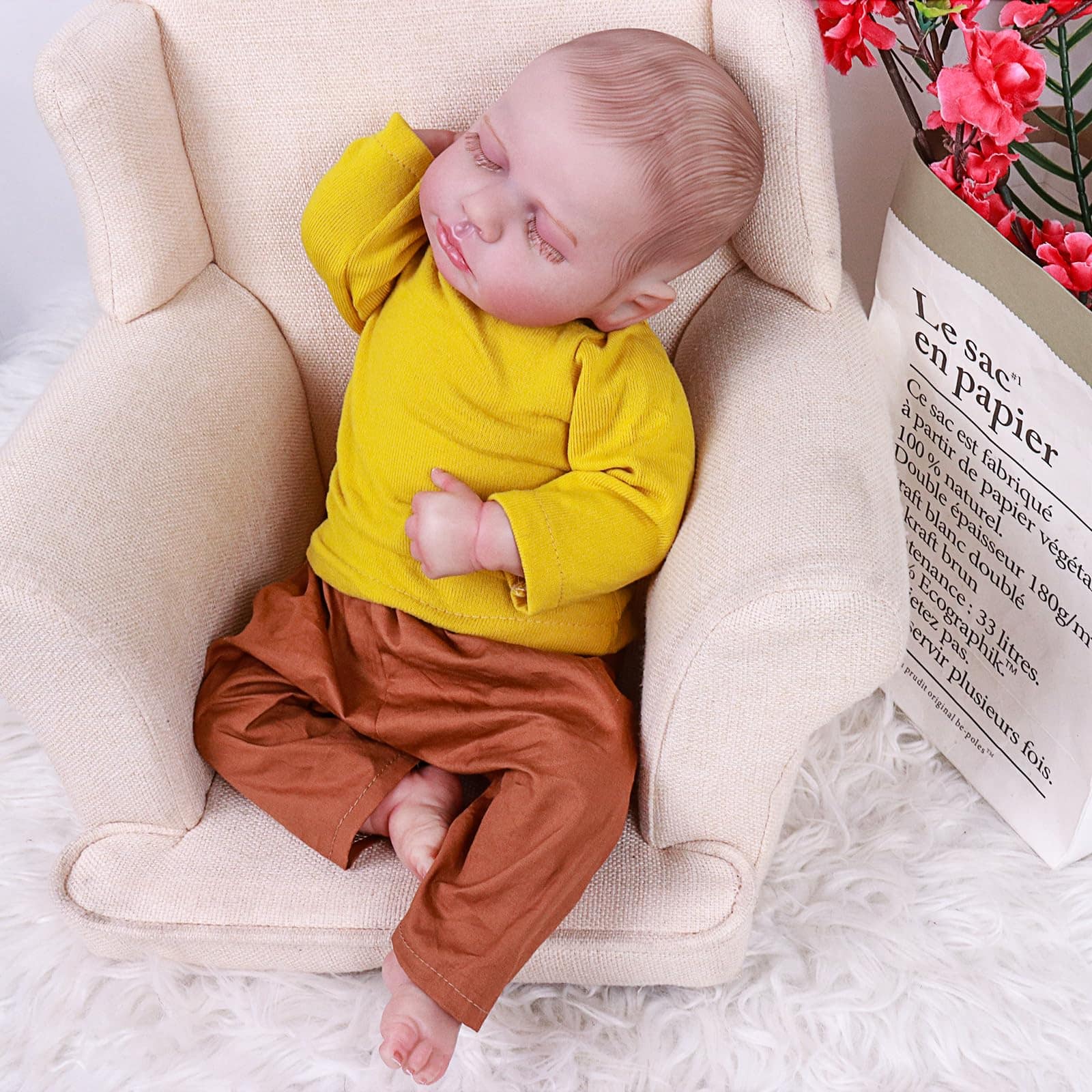 2. MATERIALES DE ALTA CALIDAD: La cabeza, brazos y piernas de las muñecas reborn realistas están hechos de vinilo y silicona de primera calidad, el cuerpo de la muñeca reborn está hecho de tela suave y algodón, seguro y no tóxico, suave y flexible al tacto, con una construcción duradera que garantiza un juego y exhibición duraderos. Tiene articulaciones móviles como un bebé real y puede adoptar cualquier pose.