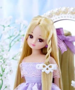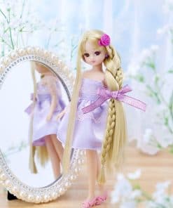 Muñeca Licca-chan con cabello largo y recto. El set incluye muñeca (con ropa interior, pendientes, vestido), zapatos (sandalias cruzadas), coletero para el pelo, pinzas para el pelo, peine y extensión de miel. ¡Disfruta creando peinados a la moda! (No contiene referencias a Amazon ni sitios externos)