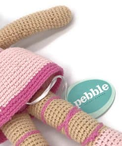Muñeca Rosa Bailarina de PEBBLE Vestida con un suave tutú rosa, con su cabello marrón recogido en un moño, está lista para girar y lucir sus zapatillas de ballet rosas. ¡Esta muñeca de reliquia ha sido cosida a mano con amor y está lista para bailar con tu pequeña estrella! Pebble «¡Poniendo sonrisas en los rostros de todo el mundo!»