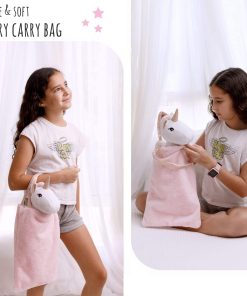 La bolsa rosa peluda agrega un elemento práctico a todo este set. Es lo suficientemente grande como para llevar la muñeca unicornio, su ropa y accesorios, con mucho espacio para guardar otras divertidas actividades. Ideal para usar en casa o fuera de ella.