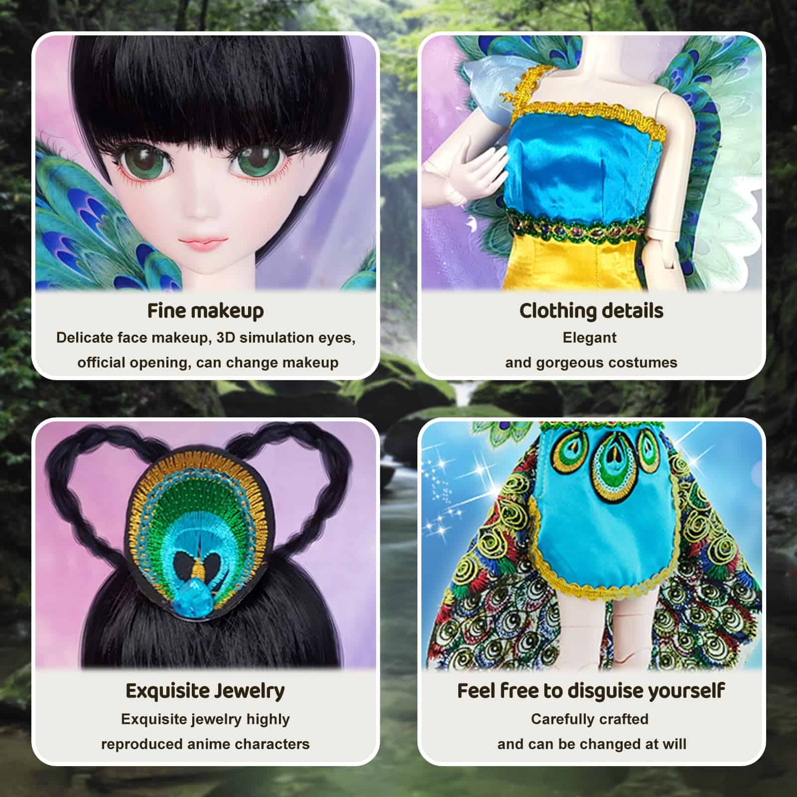 1. Diseño e Intrincado Detalle Las muñecas Yeloli muestran un exquisito maquillaje y rasgos faciales detallados, complementados con elegantes accesorios para el cabello y cabello suave. Cada muñeca viene vestida con elegantes trajes tradicionales, mejorando el atractivo de moda para el juego imaginativo. 2. Inspiradas en Personajes Queridos Estas muñecas bellamente elaboradas están inspiradas en personajes de dibujos animados populares, con una altura de 22.4 pulgadas. Con 18 articulaciones móviles y giratorias, las muñecas Yeloli ofrecen infinitas posibilidades para poses e interacciones lúdicas. 3. Sensación Increíblemente Real Experimenta la alegría de abrazar a una muñeca que se siente casi real! Las muñecas Yeloli son irresistiblemente lindas y suaves, con sonrisas encantadoras y miembros flexibles, asegurando que capturen tu corazón. Su construcción duradera resistirá todo el amor y el tiempo de juego de tus pequeños. 4. Elección de Regalo Perfecta Ideal para niños de 3 años en adelante, las muñecas Yeloli son maravillosos regalos para cumpleaños y días festivos. Estos juguetes encantadores son una opción fantástica para despertar la creatividad y la alegría en las jóvenes imaginaciones. 5. Colección Inspirada en Anime Cada muñeca Yeloli es un homenaje a los personajes queridos de la serie de anime Yeloli Fairy. Diseñadas específicamente para los fans del programa, estas muñecas son una parte esencial de la colección de muñecas Yeloli, convirtiéndolas en una posesión muy apreciada tanto para coleccionistas como para niños.
